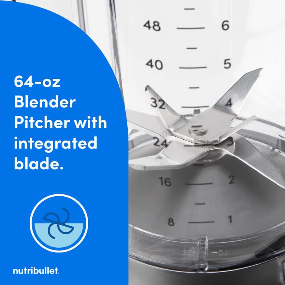 This sleek, full-sized blender is designed for ease and precision, with 1400-Watts of power and 5 variable speed settings - the widest range of any Nutri bullet. It also features an intelligent load-sensing auto cycle, which assesses ingredients and automatically adjusts speed, time, and function to deliver optimal results. The blender's intuitive, streamlined interface offers easy navigation and perfect timing for every type of blend, while its durable 64 oz. pitcher fits in ample quantities of your favorite fruits, veggies, nuts, seeds, and beyond. And with its refined silhouette and elegant, understated satin finish, it seamlessly complements any kitchen aesthetic. It’s smart, it's precise, it's powerful and stylish. When it comes to kitchen essentials, this one makes good sense.