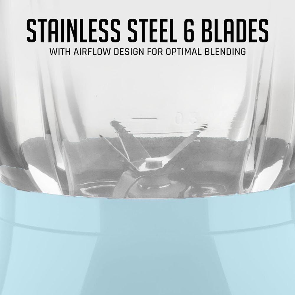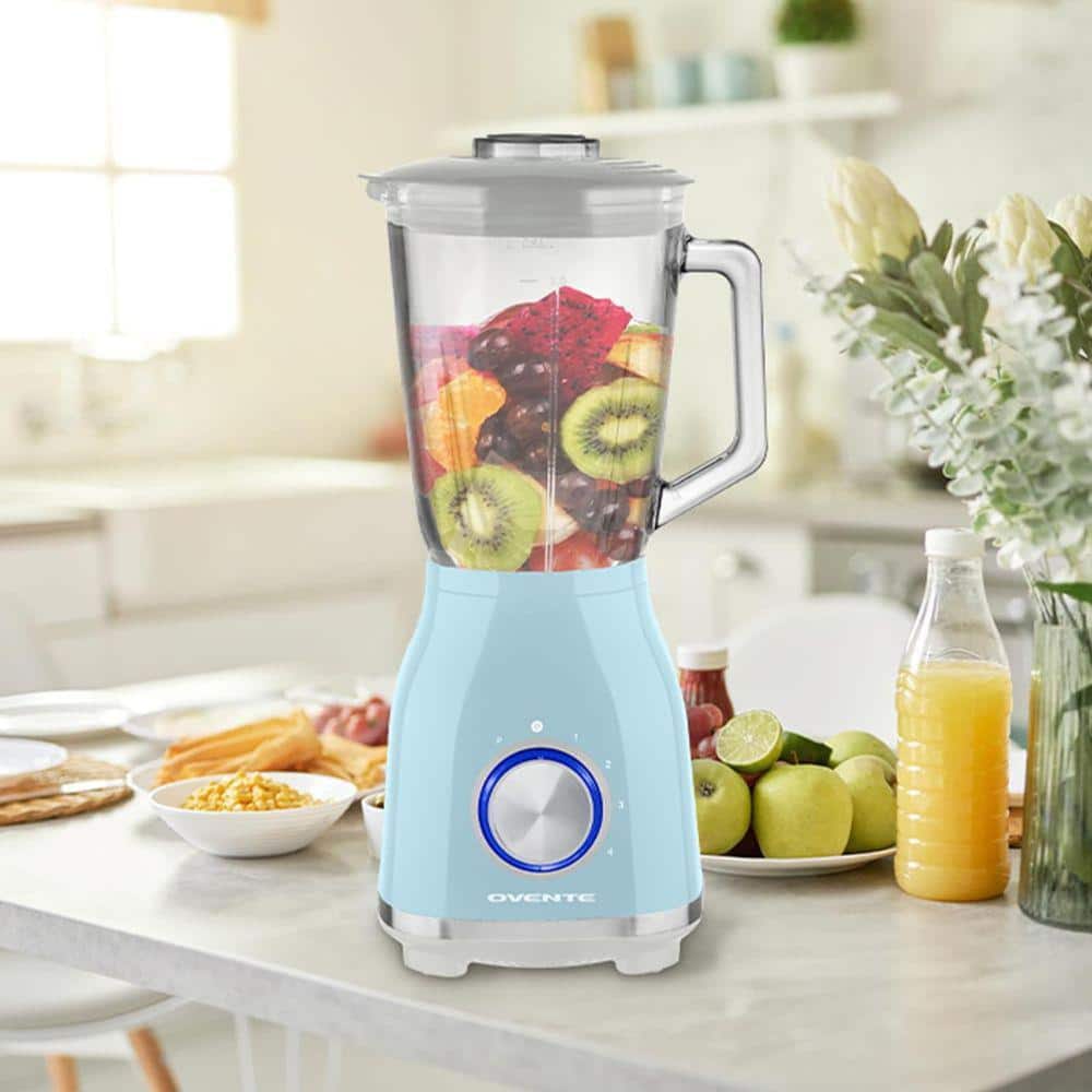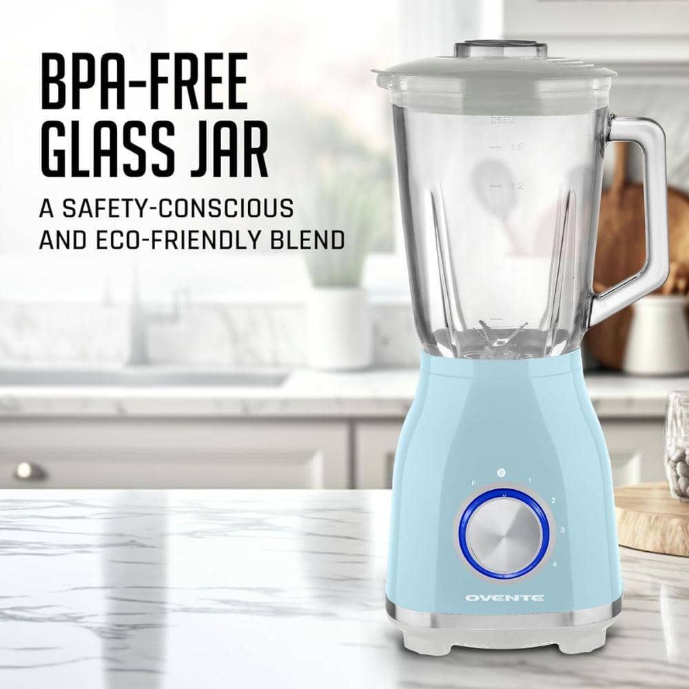 OVENTE 50 oz. Glass Jar Blender, 4-Speed Settings, LightBlue, Countertop Kitchen Blender w/ 550-Watt and StainlessSteel Blades