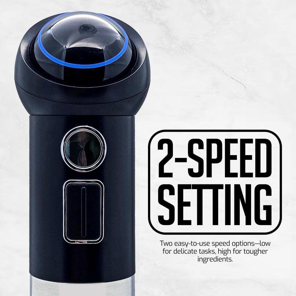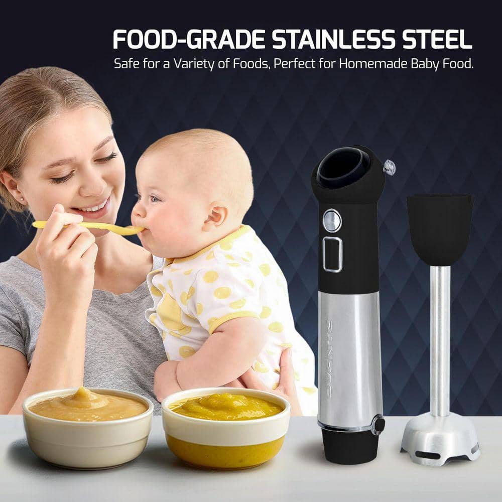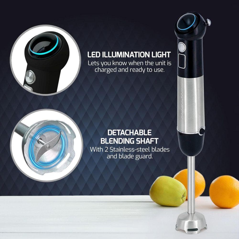 OVENTE Immersion Blender Black Stainless Steel Blades Rechargeable 300-Watt Hand Mixer 2-Speed Pulse Activating Sensor