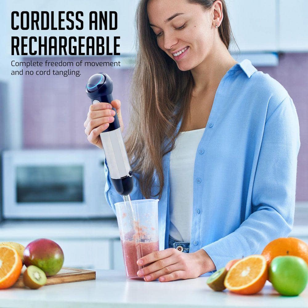 - Cordless hand blender with 300-watt motor for versatile use
