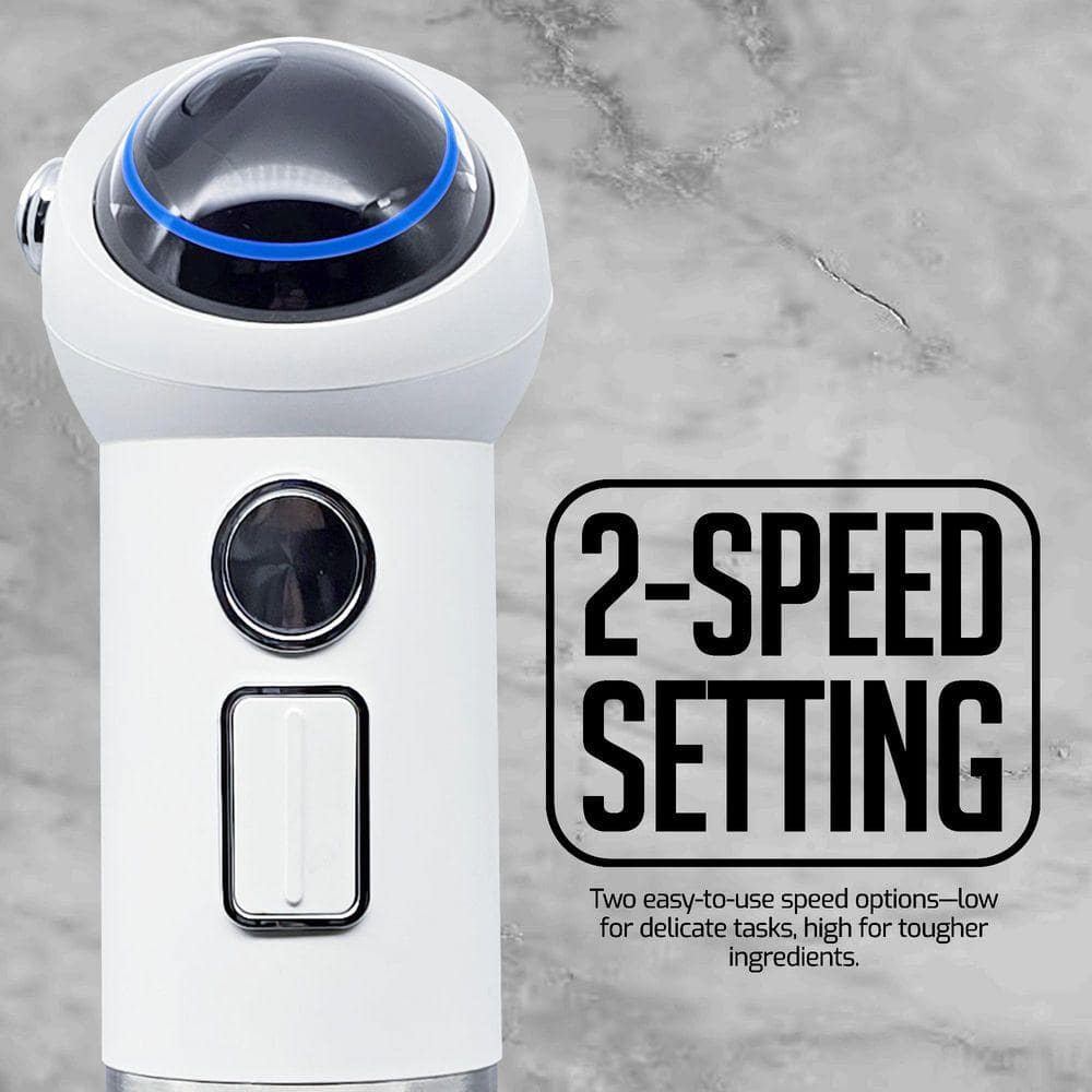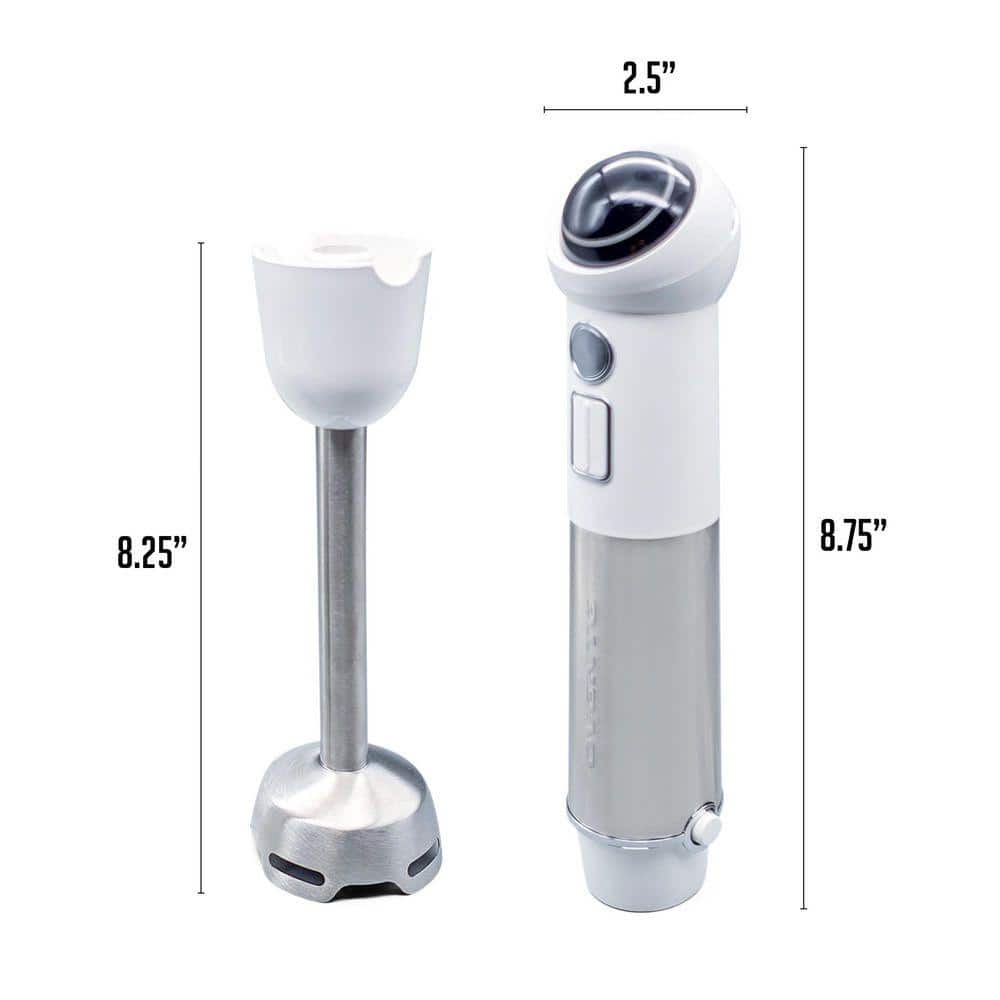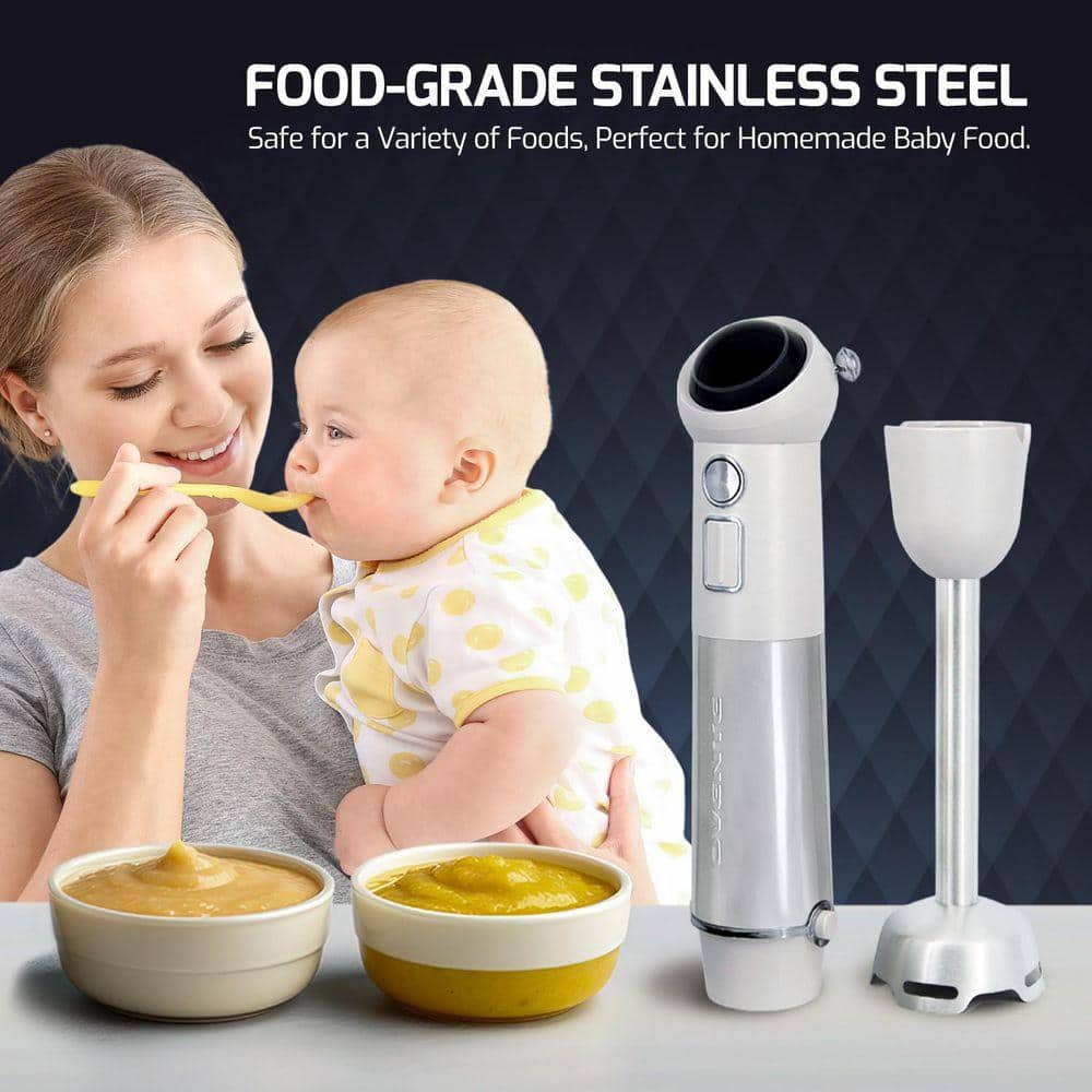OVENTE Immersion Blender White Stainless Steel Blades Rechargeable 300W Hand Mixer 2-Speed Pulse Activating Sensor