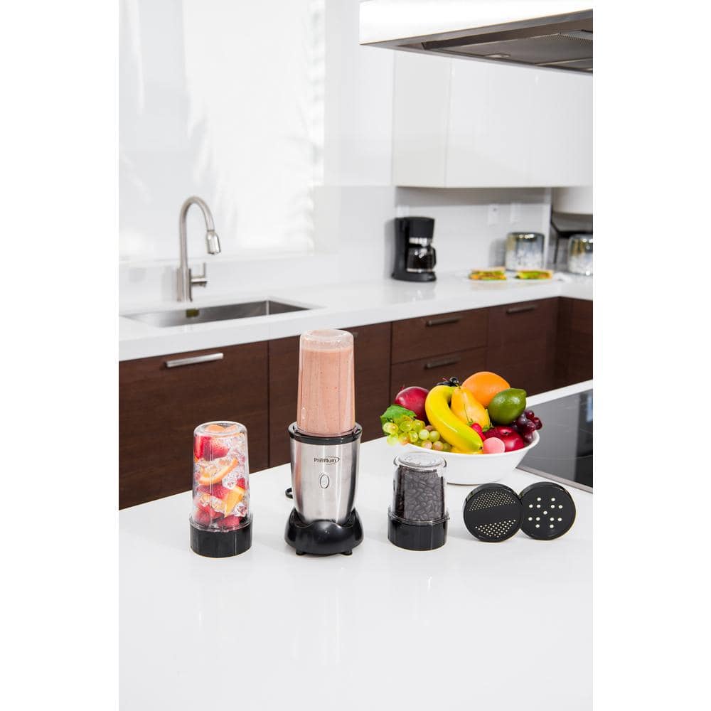 Premium LEVELLA 9-Piece 19 oz. Single Speed Silver Personal Blender Set