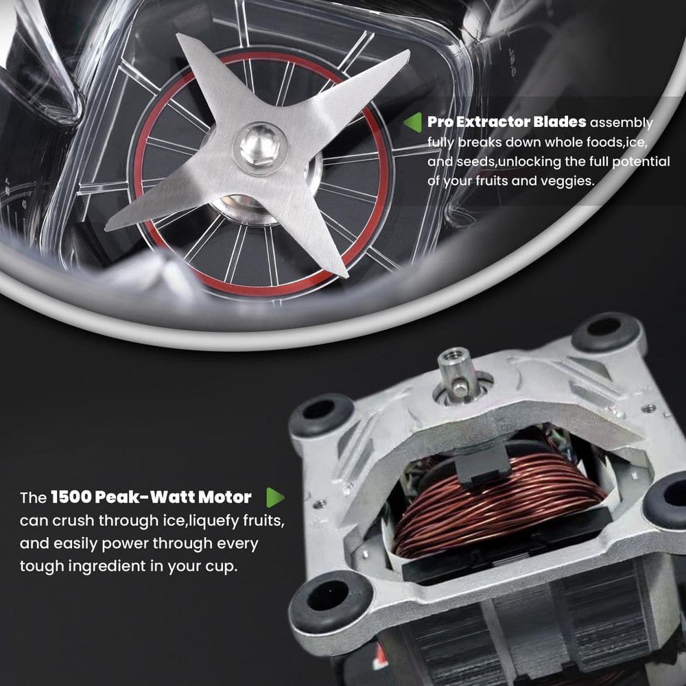 - 1500W high-speed motor blends, grinds, and heats in minutes.