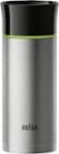 Enjoy your favorite hot or cold beverages at the perfect temperature with this 11-ounce Braun thermal mug. The double-walled stainless steel container keeps your drink hot for four hours or cold for 14 hours. The one-click opening and anti-leak lid lets you easily drink from any side of this Braun thermal mug without spills.