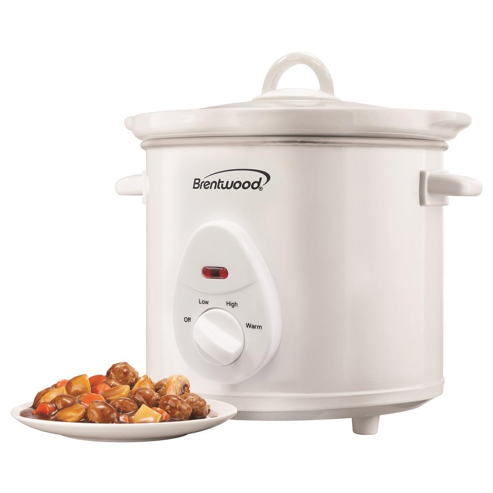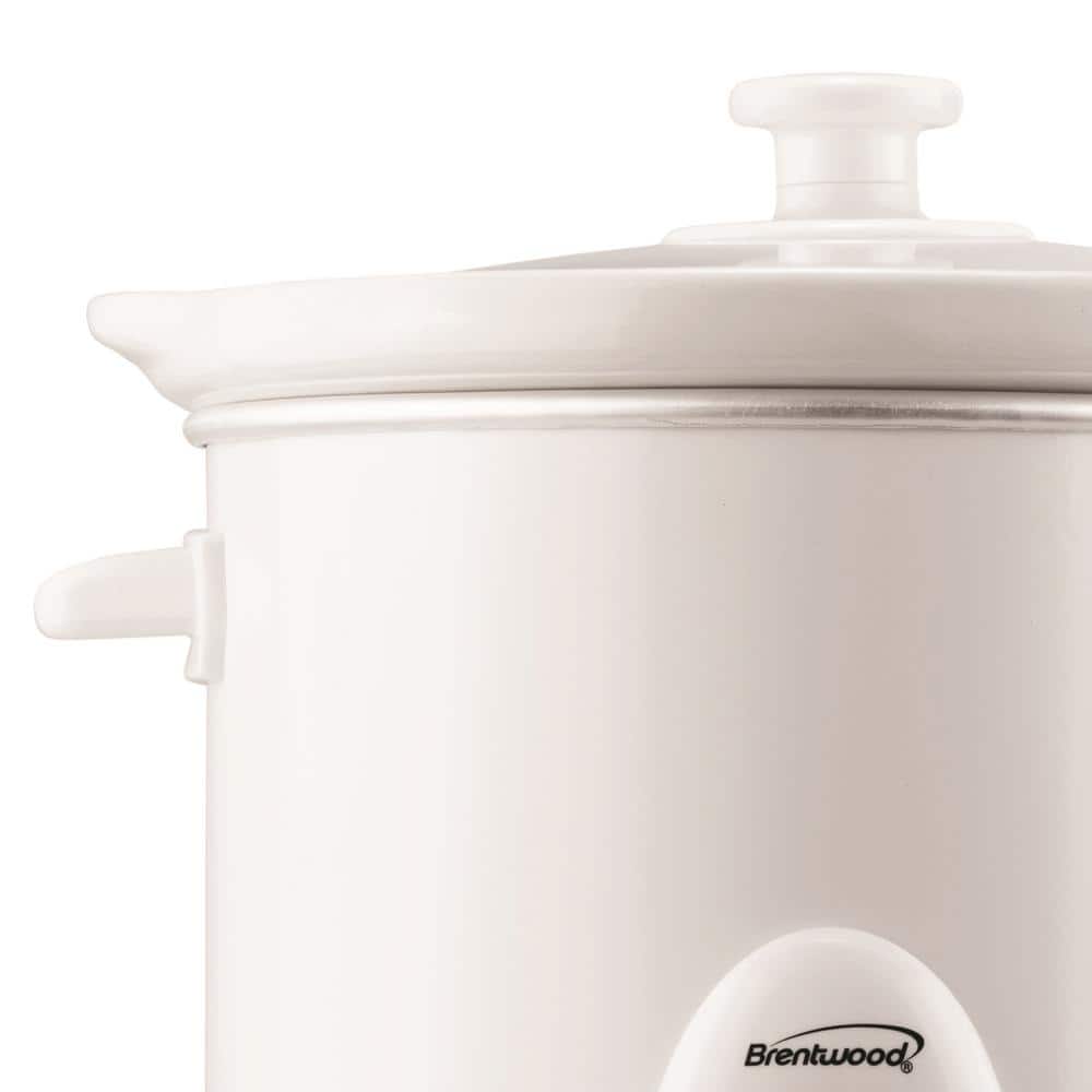 The powerful Brentwood White 170-Watt 3 qt. Slow Cooker creates delicious meals while you go on with your day. Place the ingredients in the cooker in the morning and have dinner by the time you get home. It serves up to 5 people. The dishwasher-safe, removable glass lid and ceramic pot make serving easy and cleanup a snap.