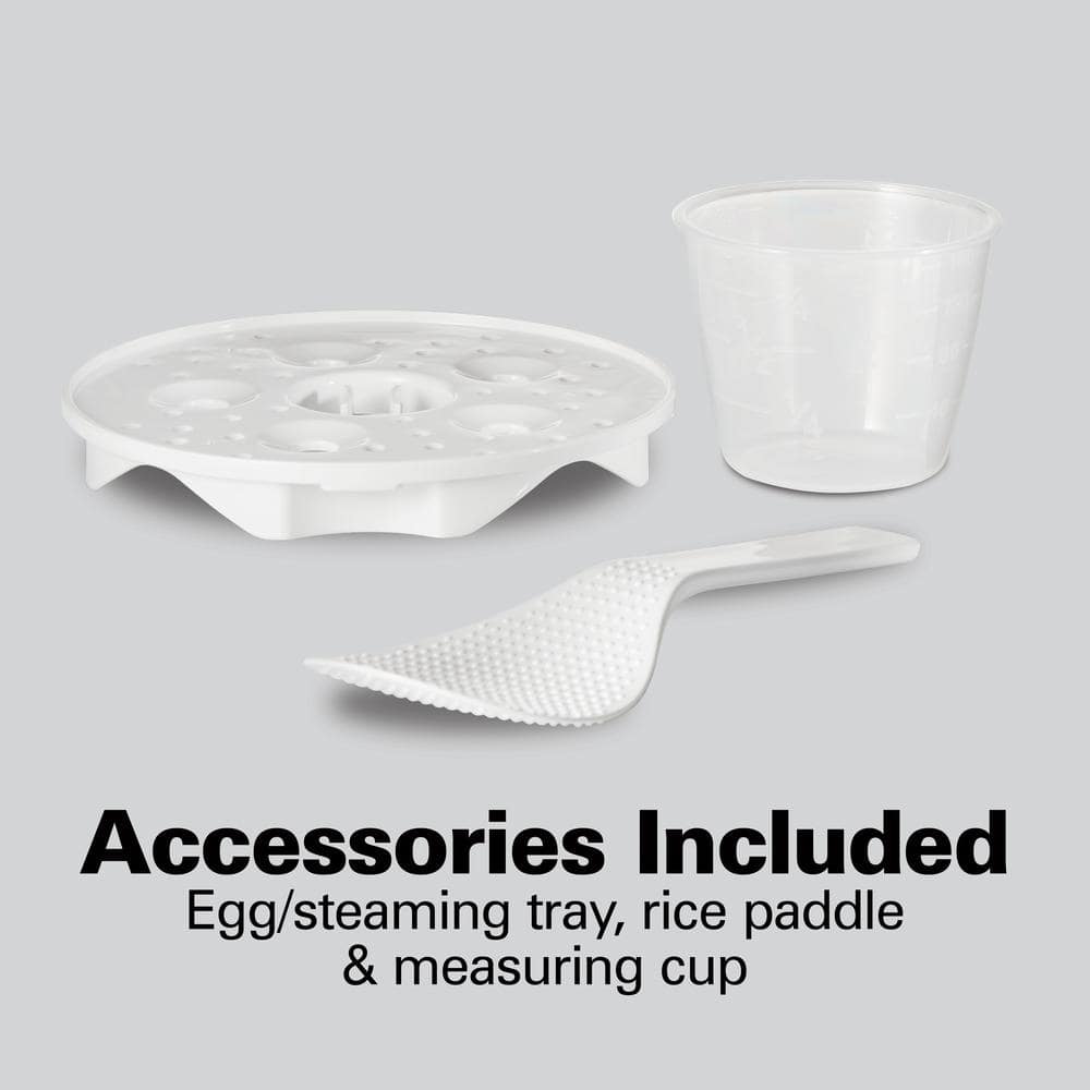 Save storage space while enjoying complete cooking flexibility with the Hamilton Beach Compact Multi Cooker. Combining the functions of a rice cooker, egg cooker, slow cooker, steamer and more, this multi cooker is perfect for making a variety of dishes in a single pot. The 1.5 quart capacity is perfect for making enough for 1-2 people and for kitchens where space is limited. An egg/steaming tray, rice paddle and measuring cup are included.