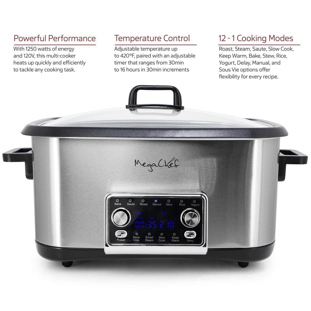 MegaChef 8 Quart 12-in-1 Stainless Steel Silver Deluxe Multi Cooker with Sous Vide and Multi-Functions