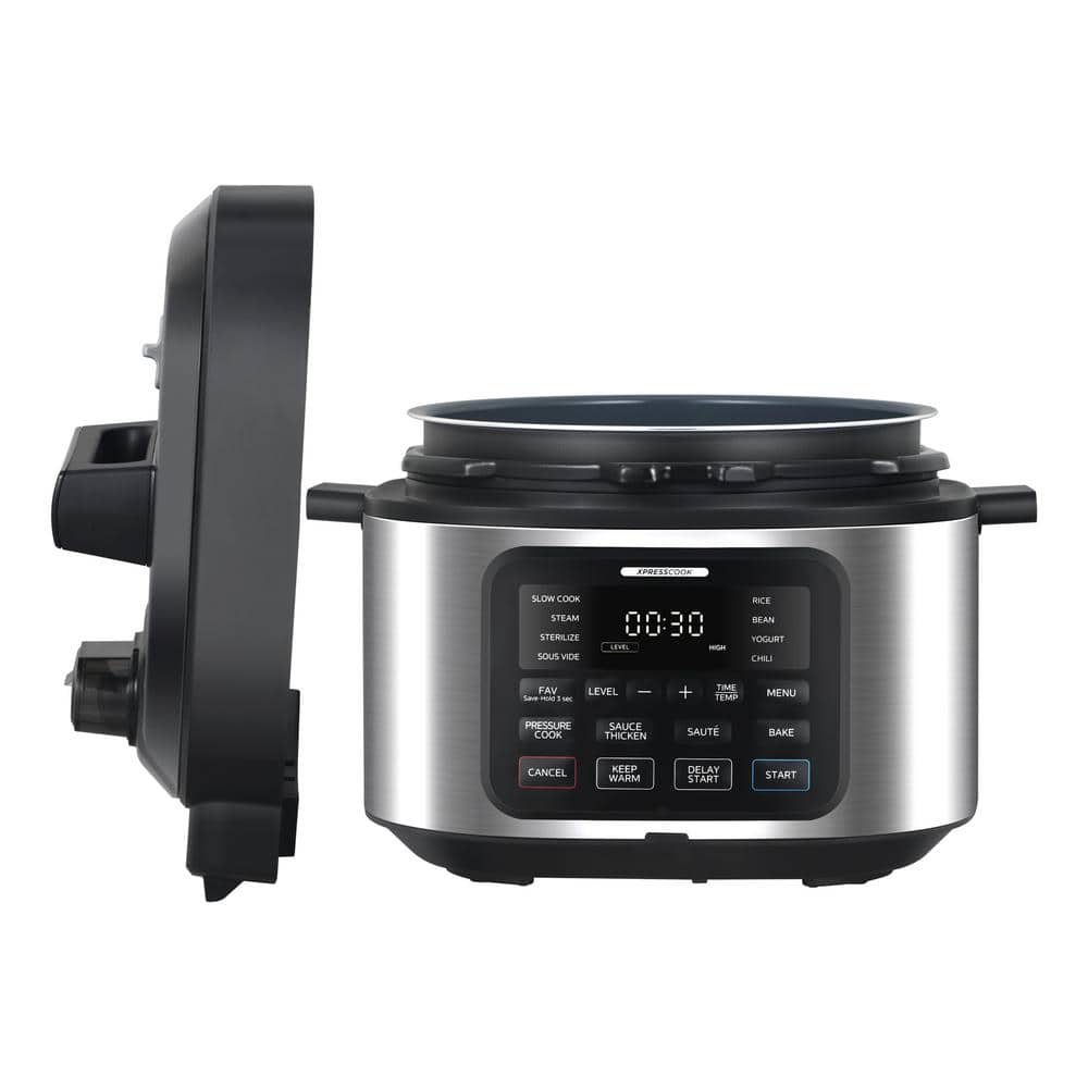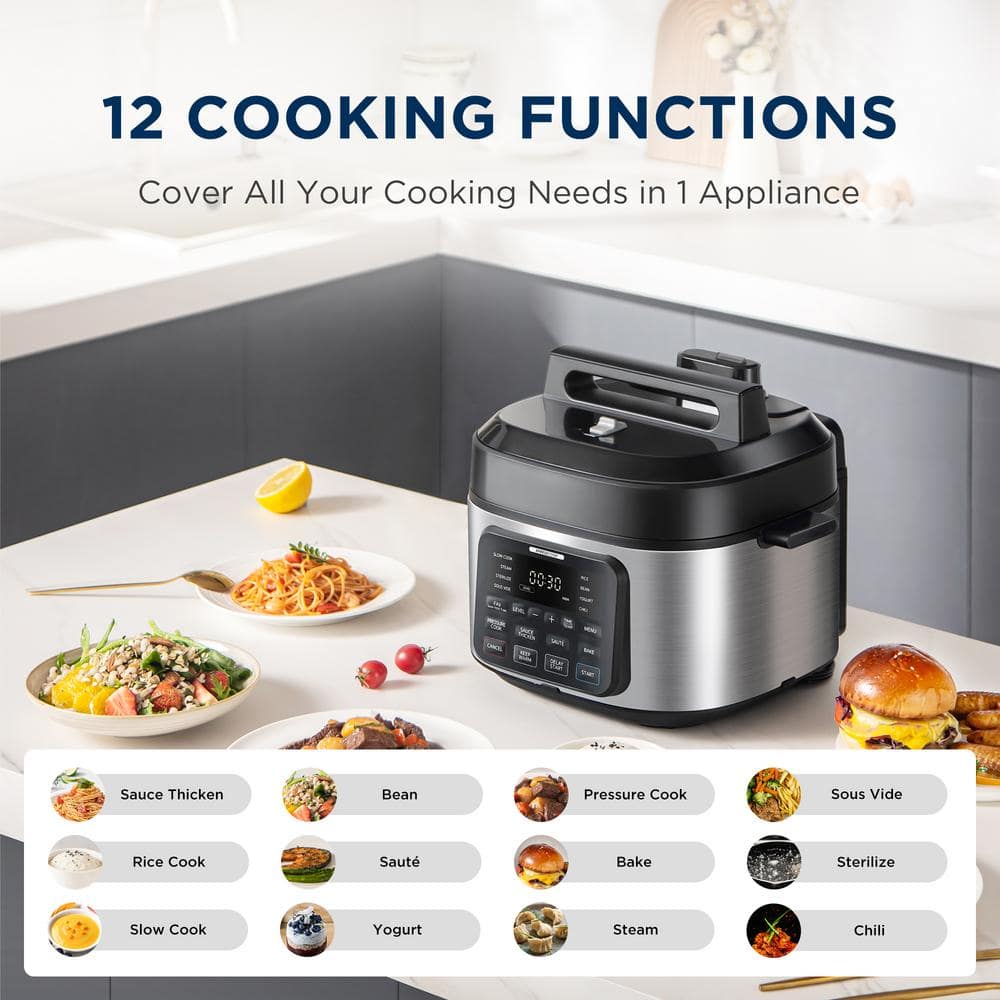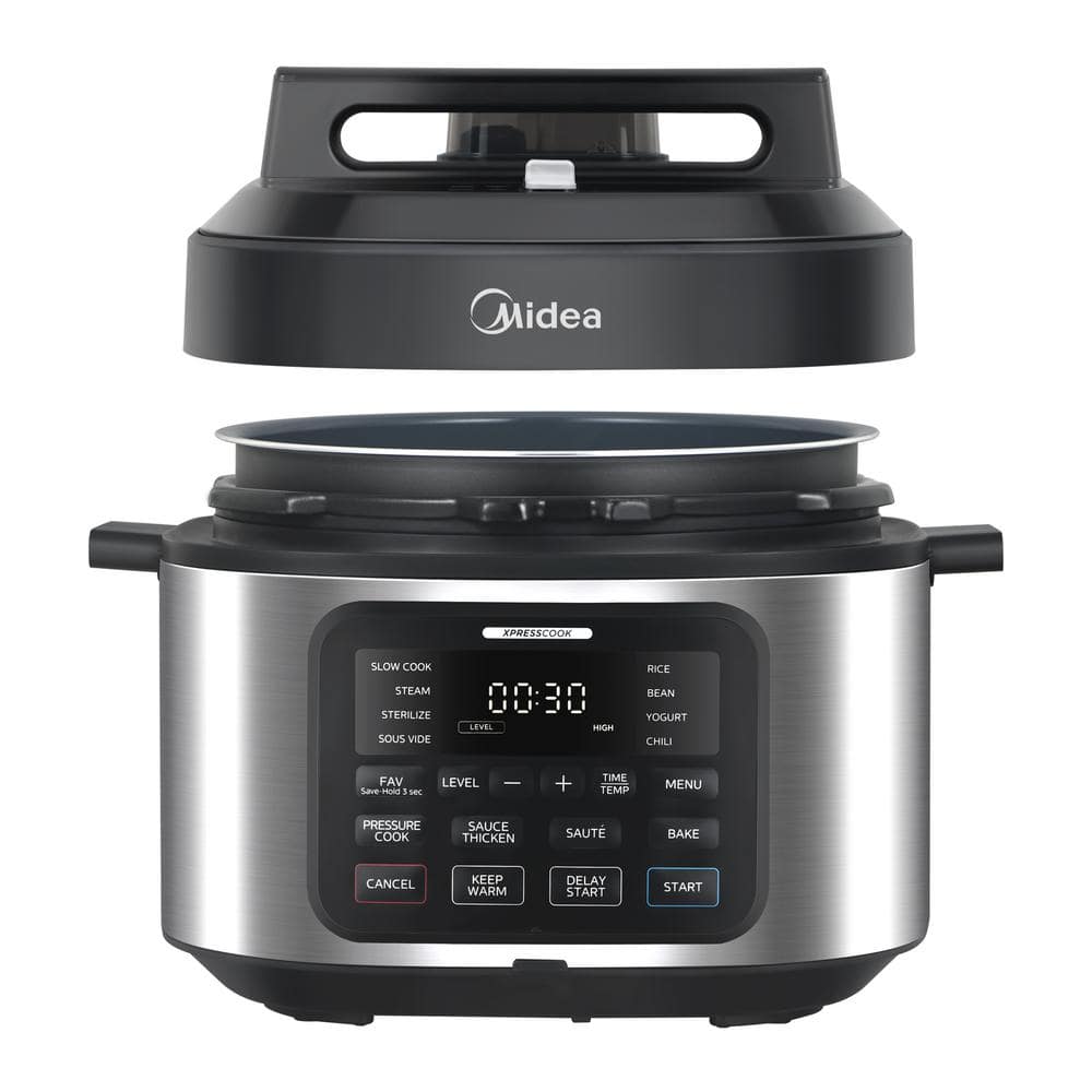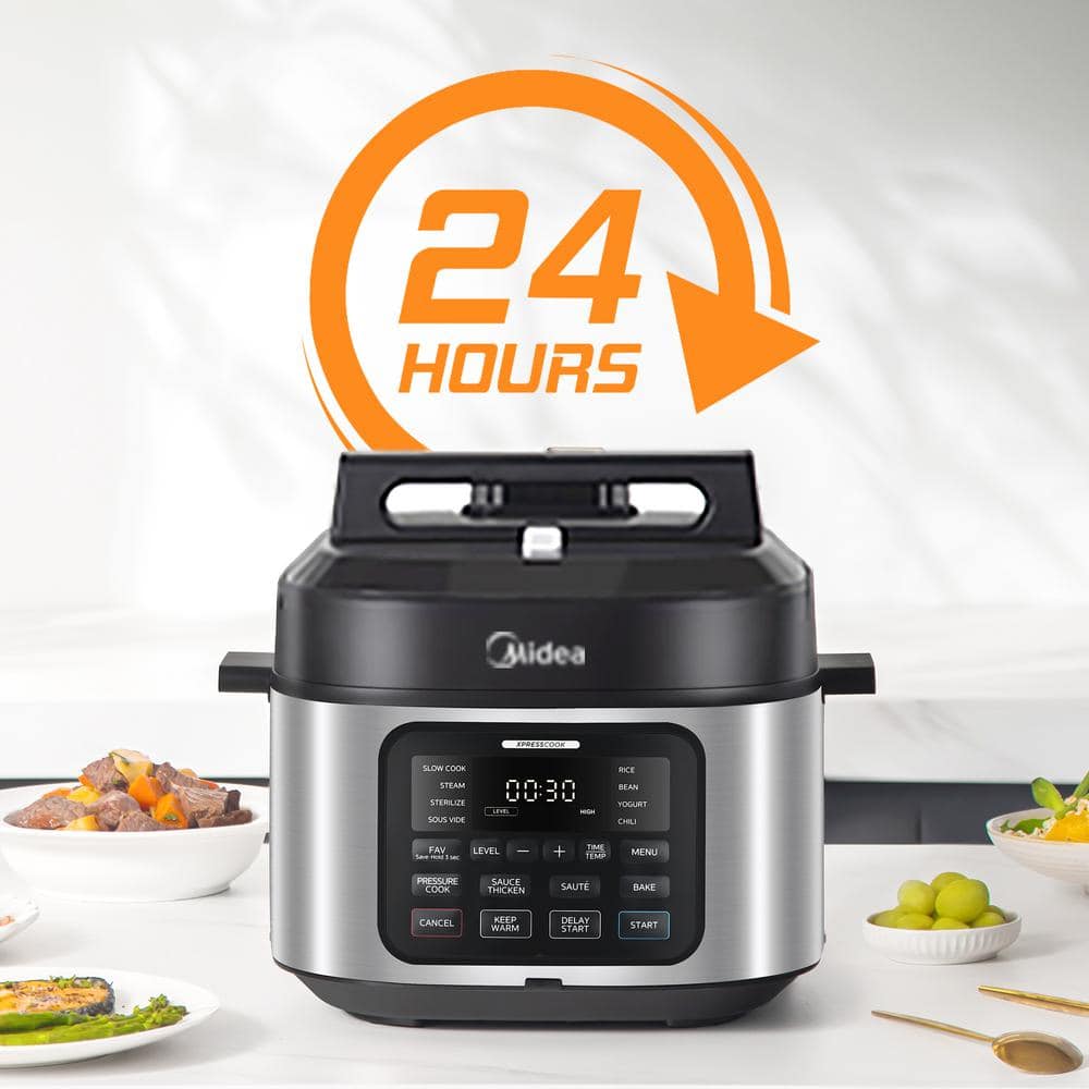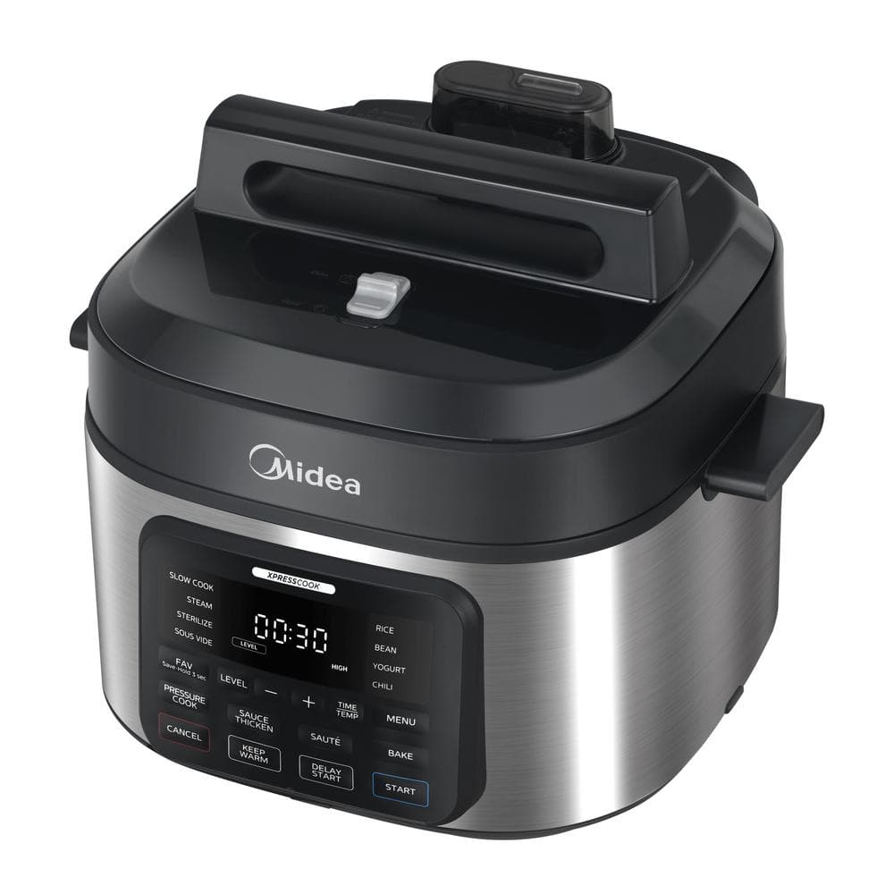 Experience the joy of home cooking with the Midea Wide-Body 13-in-1 Multi Cooker, built for versatility, power, and effortless results. With its expansive saute surface and flat-bottom design, ingredients cook evenly with efficient oil distribution, making it ideal for browning, searing, and stir-frying. Featuring 13 preset cooking functions, this electric multi cooker can pressure cook, slow cook, steam, sterilize, sous vide, cook rice or beans, make yogurt or chili, bake, keep food warm, and even thicken sauces-all with the touch of a button. The safe and quiet 1-touch pressure release system ensures stress-free steam management. With dual 80kPa pressure levels and up to 1,500 watts of power, meals cook fast and thoroughly. Easily switch between low, medium, and high heat settings for more precise control. A digital display shows cook time and alerts for added safety. Plus, the standalone lid design lets you place the lid flat on your counter, freeing your hands for multitasking.