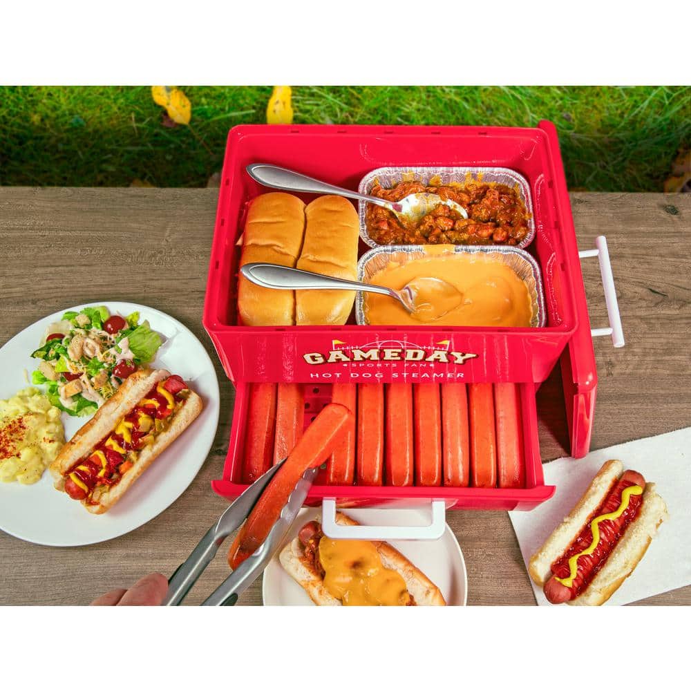 Bring everyone together to enjoy the game, great food, and camaraderie. This hot steamer allows you to cook up to 20 dogs and heat 8 buns at a time, pleasing the crowd with excellent food. You can also cook veggies, pot stickers and more. Cheers to delicious food and good times.