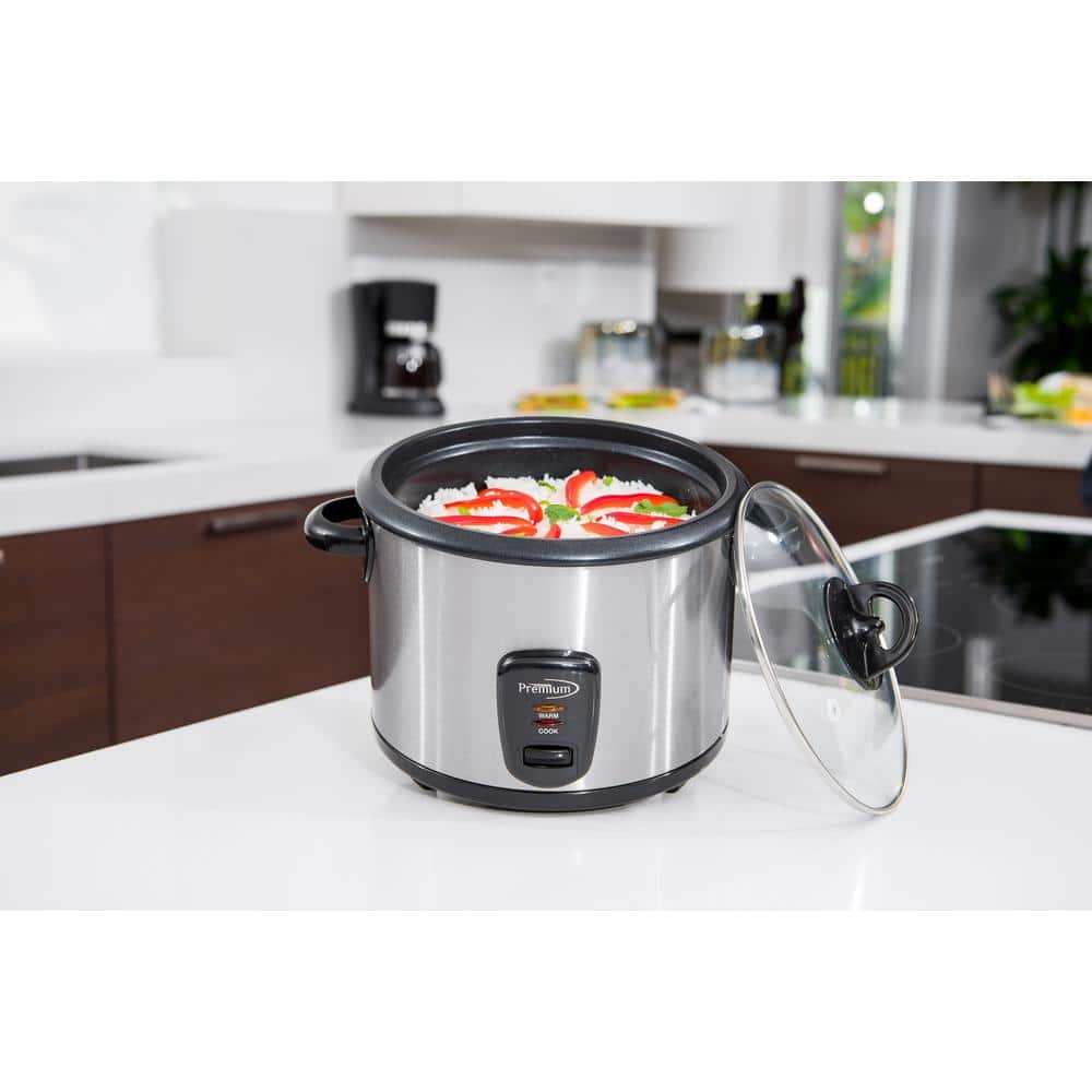 PREMIUM 16-Cup Deluxe Rice Cooker cooks rice to perfection every time. With a 16-Cups cooked rice capacity it makes plenty of rice for your whole family plus guests, and using the keep warm function allows rice to be prepared in advance. The removable non-stick cooking pot makes clean up simple, and the included rice paddle and measuring cup mean you have all the supplies needed to make and serve delicious rice every day.
