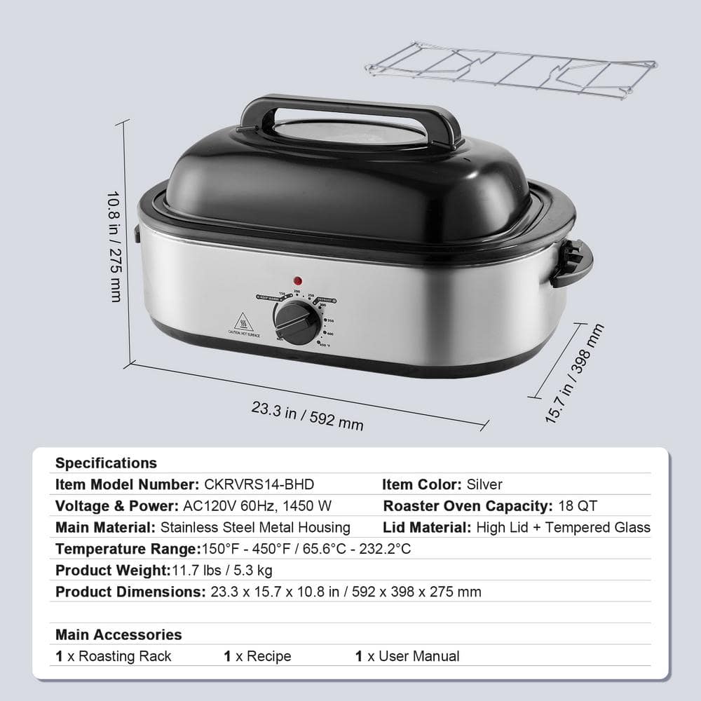 SVOPES Electric Roaster Oven 18 qt. Siver Slow Cooker 1450-Watt Turkey Roaster with Self-Basting Lid, Defrost and Warm Function