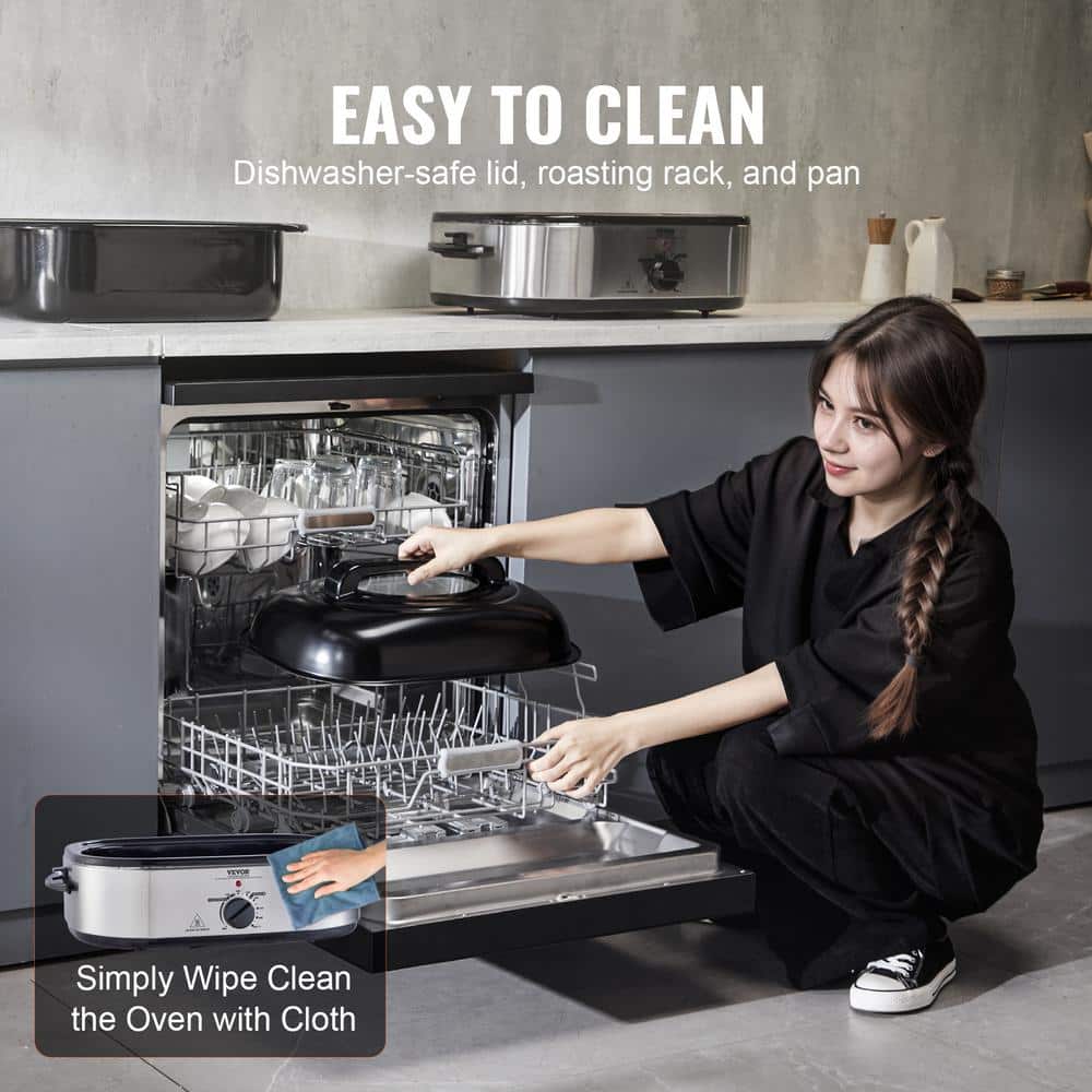 Electric Roaster Oven. VEVOR 22QT. electric roaster oven is your go-to appliance for roasting a browned turkey weighing up to 26 lbs., perfectly serving for 8-10 people, Its self-basting lid ensures even sauce distribution for tender and juicy results, while the wide temperature range meets various cooking needs.