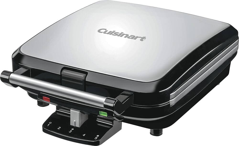 Make tasty brunch treats with this Cuisinart Belgian waffle maker. Its five settings let you control the browning for customized results, and a handy indicator light lets you know when the waffles are fully cooked. This Cuisinart Belgian waffle maker produces four deep-pocketed waffles, making it the ideal choice for families.