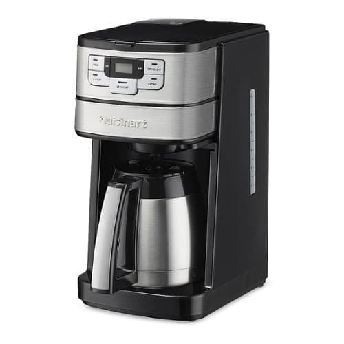 Making fresh-ground coffee at home is easy with the Cuisinart Automatic Grind & Brew 10-Cup Thermal Coffeemaker. Designed with a powerful blade grinder that automatically grind beans just before brewing, it does all the work for you with programmable 24-hour brew start, auto-off, and 1-4 cup setting options. Preset to have a pot of hot, delicious coffee ready first thing in the morning. Don’t want to wait for a full pot to brew? Use the Brew Pause feature to enjoy a cup without interrupting the brew cycle. Have pre-ground coffee? Use the grind-off option to brew it to perfection. Versatile and simple to use, the Automatic Grind & Brew spares you the trip to the coffee shop. Maximum convenience and fresh, full-bodied flavor assured!