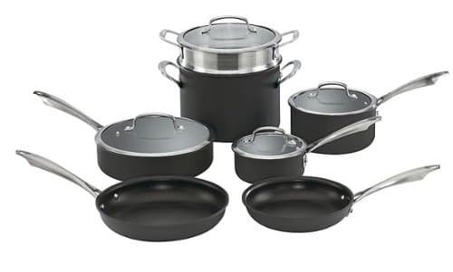 Cuisinart - Dishwasher Safe Anodized 11 Piece Cookware Set - Black
