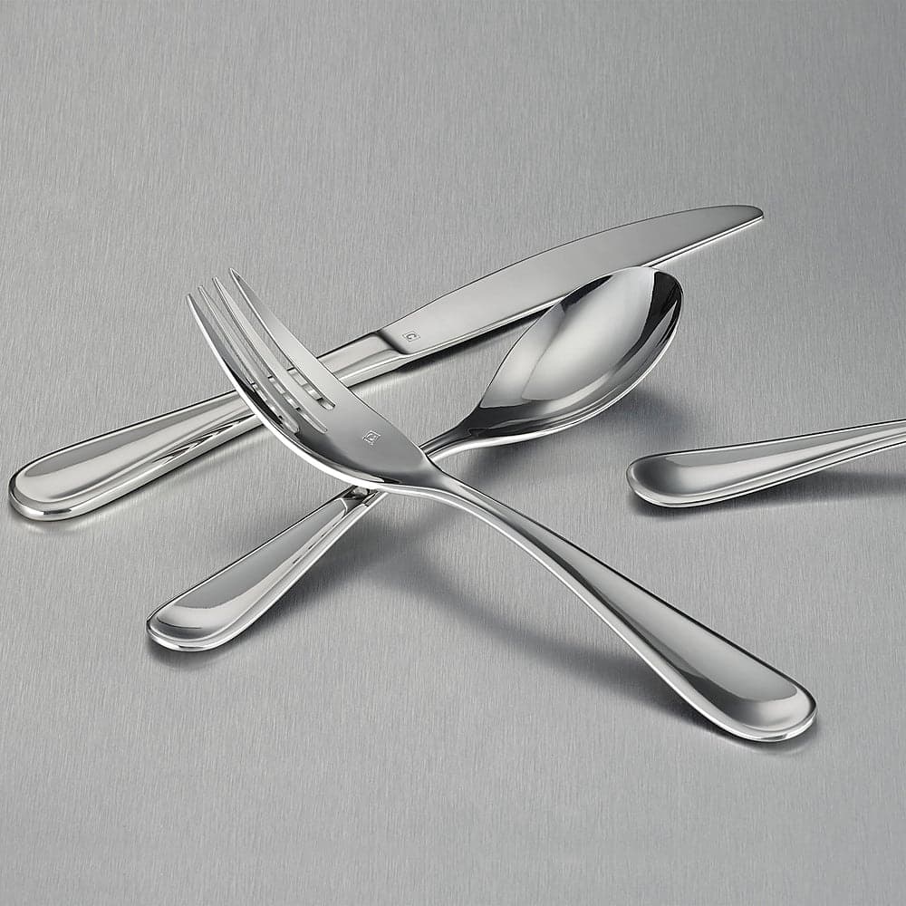 The styling evokes the same French spirit that infuses Cuisinart Cookware, which we began making in France more than 35 years ago. Set your table with Cuisinart flatware and transform an ordinary meal into an extraordinary experience. Set includes: 4 Dinner Forks, 4 Dinner Knives, 4 Dinner Spoons, 4 Salad Forks, and 4 Teaspoons.