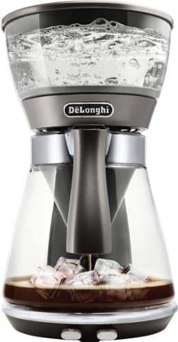 Prepare cafe-quality coffee drinks at home with this De'Longhi 3e-in-1 specialty brewer. An over-ice feature lets you brew cold beverages, while the pour-over function makes it easy to craft specialty brews. A 60-minute keep-warm option ensures your coffee stays ready to drink as you get ready for the day. This De'Longhi 3-in-1 specialty brewer boasts simple push-button controls for effortless operation.