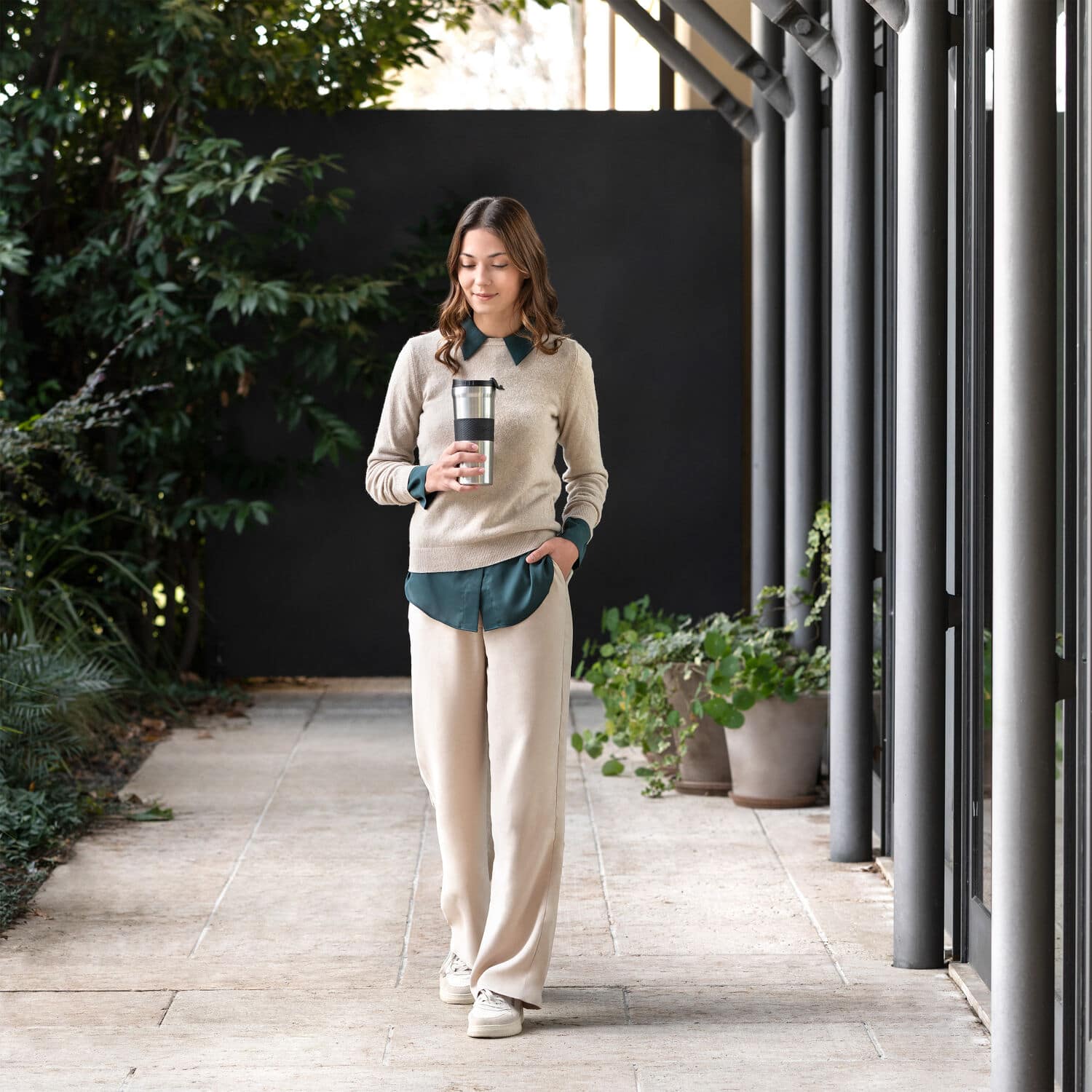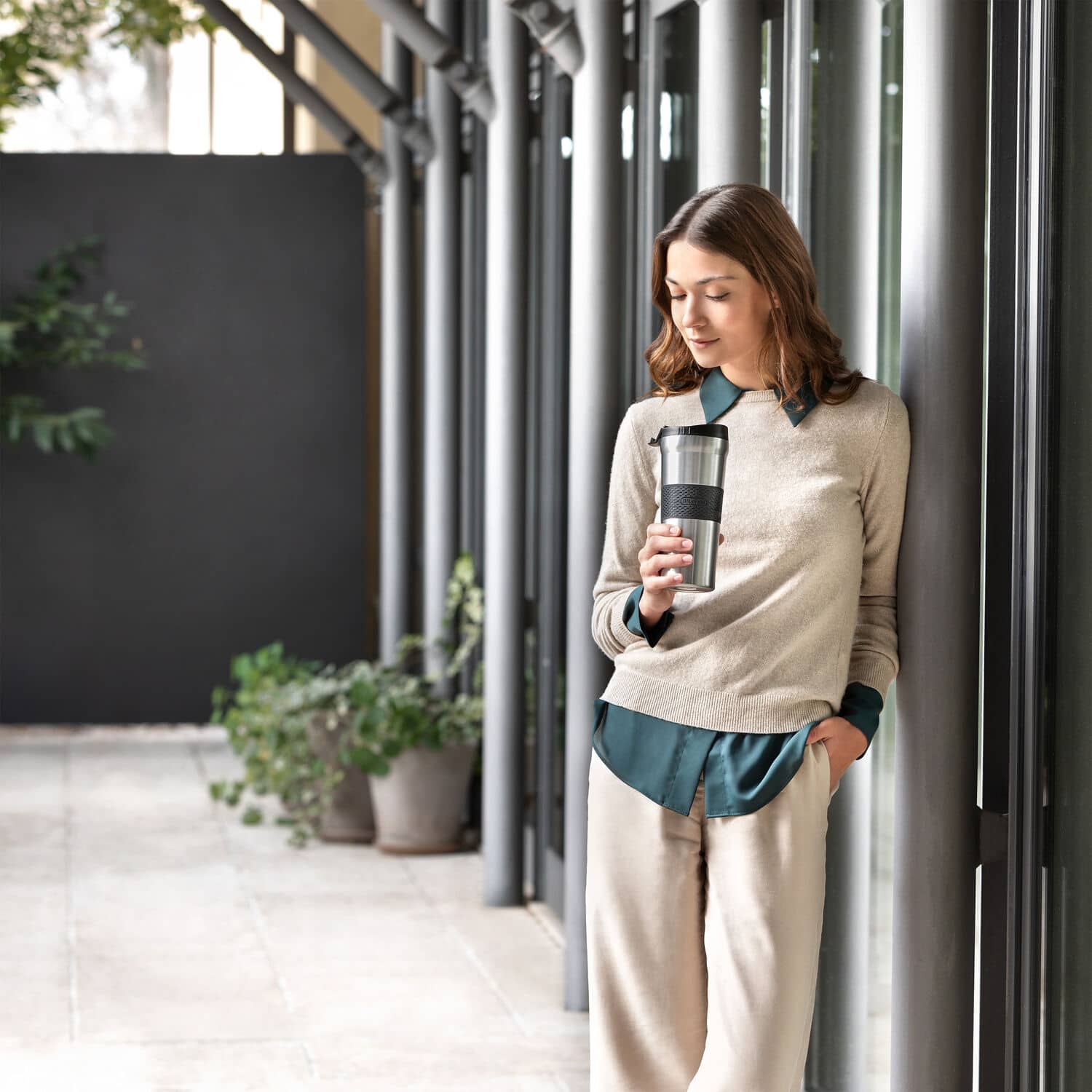 Whether you're commuting to work or running errands, the De’Longhi Coffee Travel Mug is built to handle your on-the-go coffee cravings. With a 24 oz capacity, this travel mug is equipped to hold generous servings of your favorite brew, so you can enjoy your favorite drinks wherever the day takes you. The mug is crafted from durable, insulated stainless steel so it keeps your drink hot (or cold) for longer while its spill-proof lid prevents unfortunate splashes when life gets a little bumpy. The one-click opening mechanism makes it easy to use on the go, no wrestling with lids or accidental leaks in your bag. This spill proof coffee mug is designed to fit most cup holders, making it a practical companion for commutes, road trips, or just moving from room to room. Whether you're rushing out the door or just stepping onto the patio, this travel mug brings a little more ease, and a lot more coffee, to your daily routine.