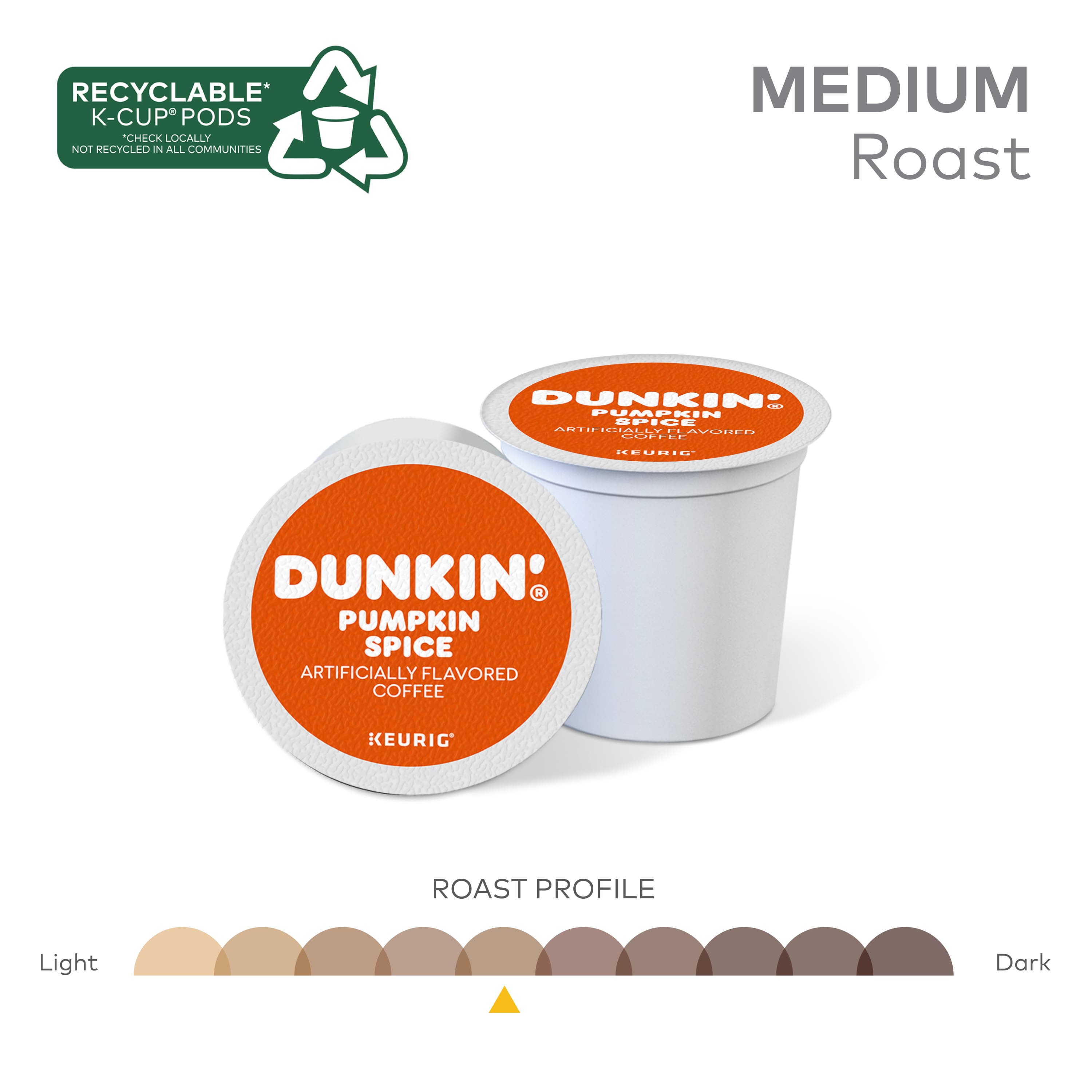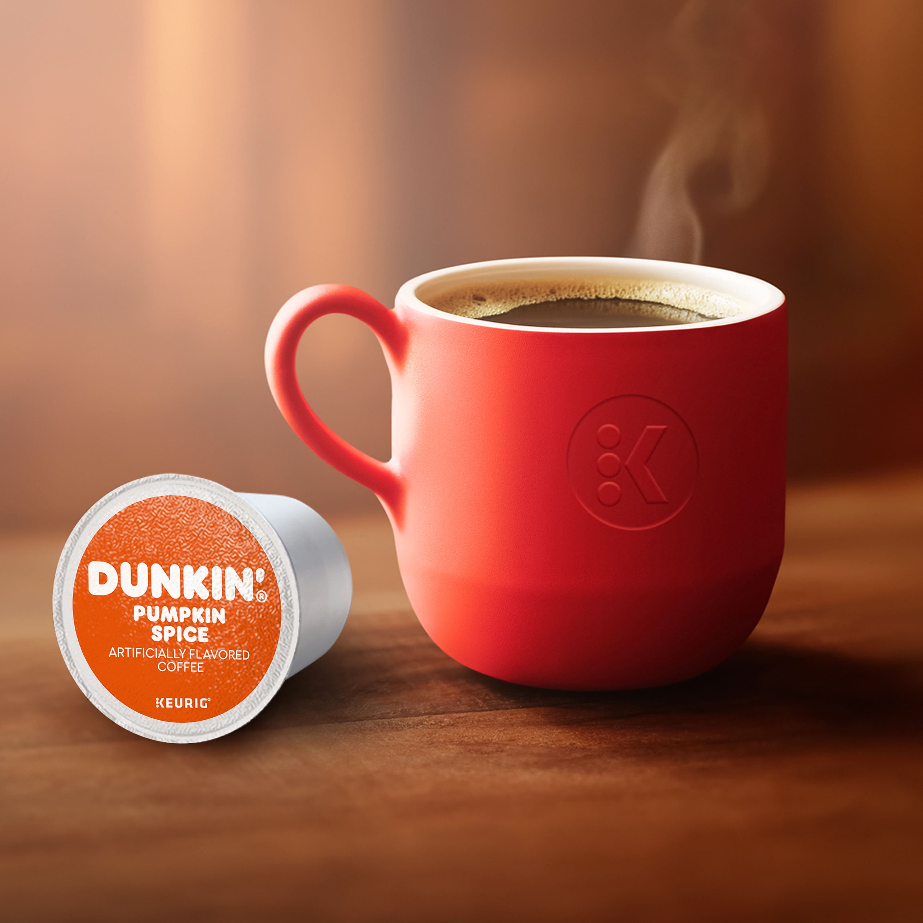 Spice up the season with fall flavors like pumpkin, nutmeg and cinnamon. Warm up with a cup of this Dunkin' Pumpkin Spice delicious, seasonal blend. Keurig K-Cup Pods made with 100% Premium Arabica Coffee.