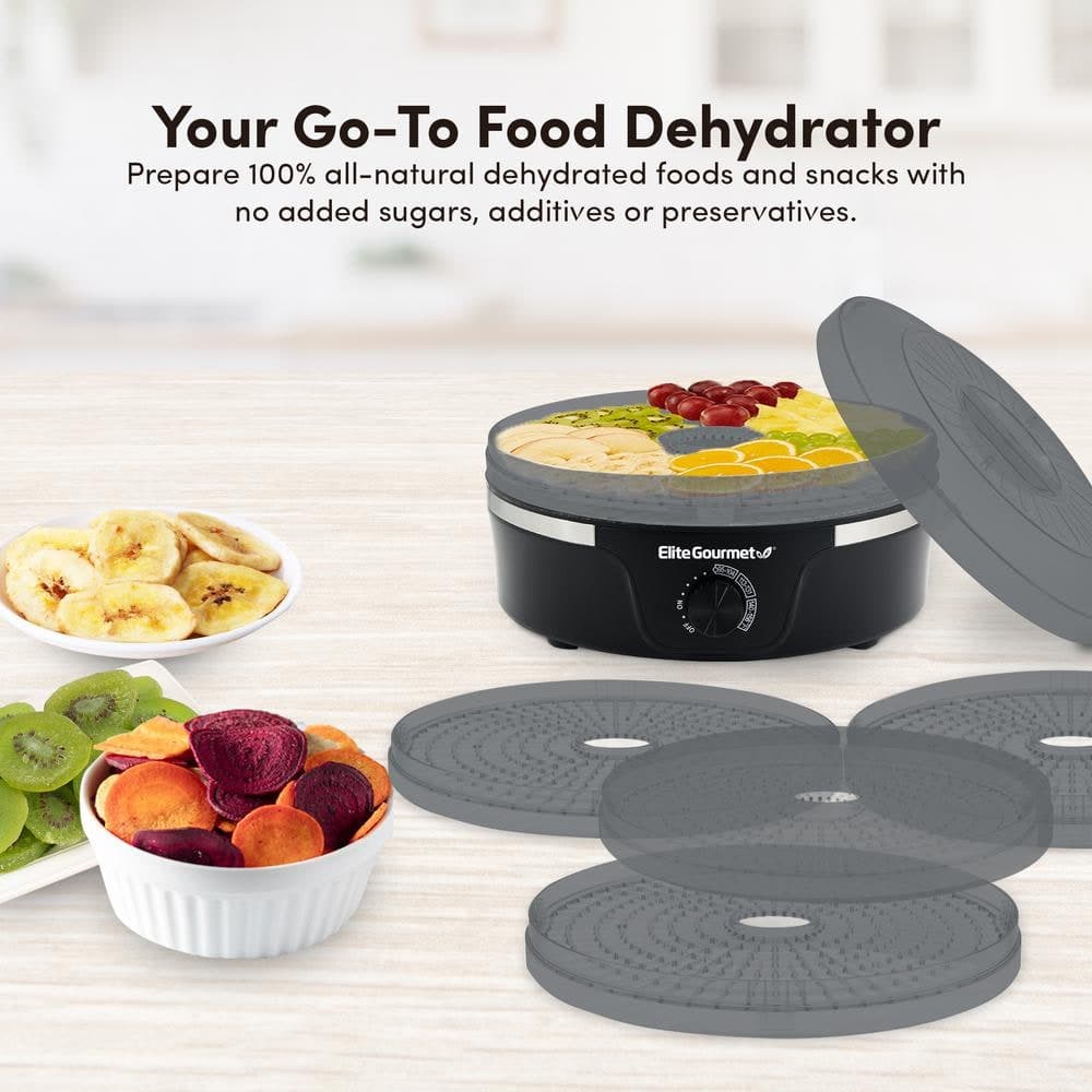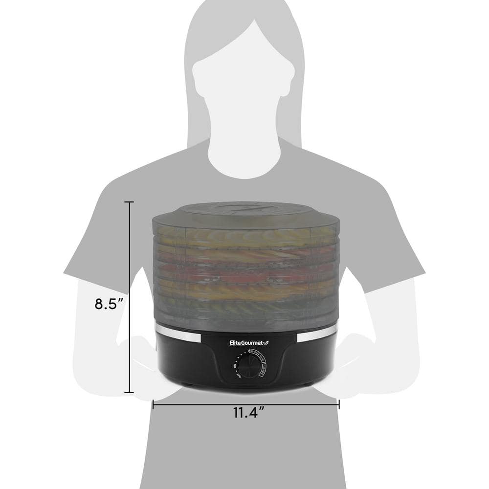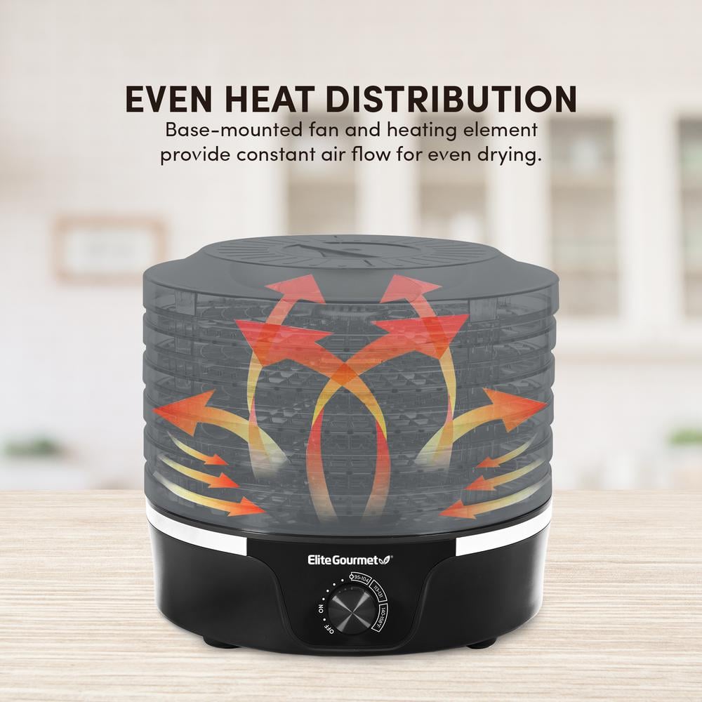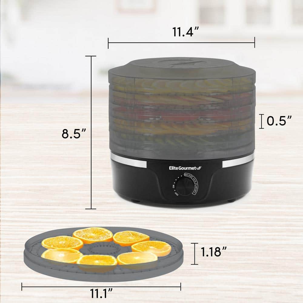 Elite Gourmet Food Dehydrator with Adjustable Temperature Dial and 5-Trays, Black with Clear Trays