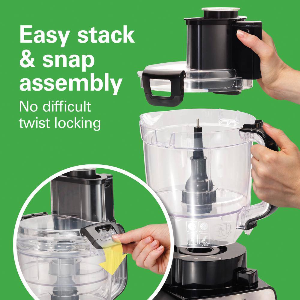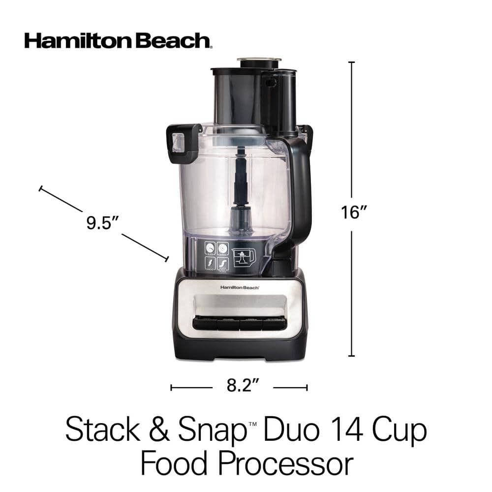 Hamilton Beach Stack n Snap Duo 14-Cup 2-Speed Black and Stainless Steel Food Processor with Dual Bowls