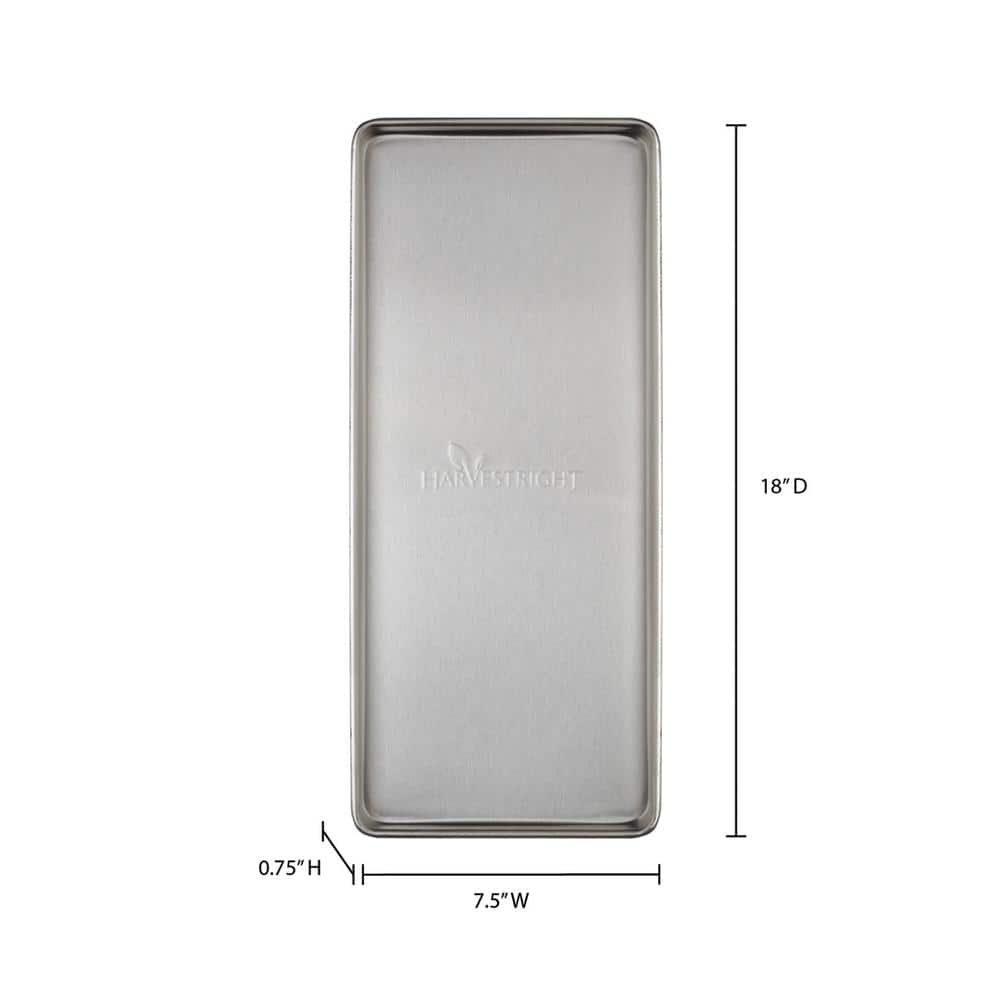 5 stainless steel trays for use in a Harvest Right Medium freeze dryer. Durable and long lasting. Dimensions are 7.5″ W x 18″ L x 0.75″ H for each tray.