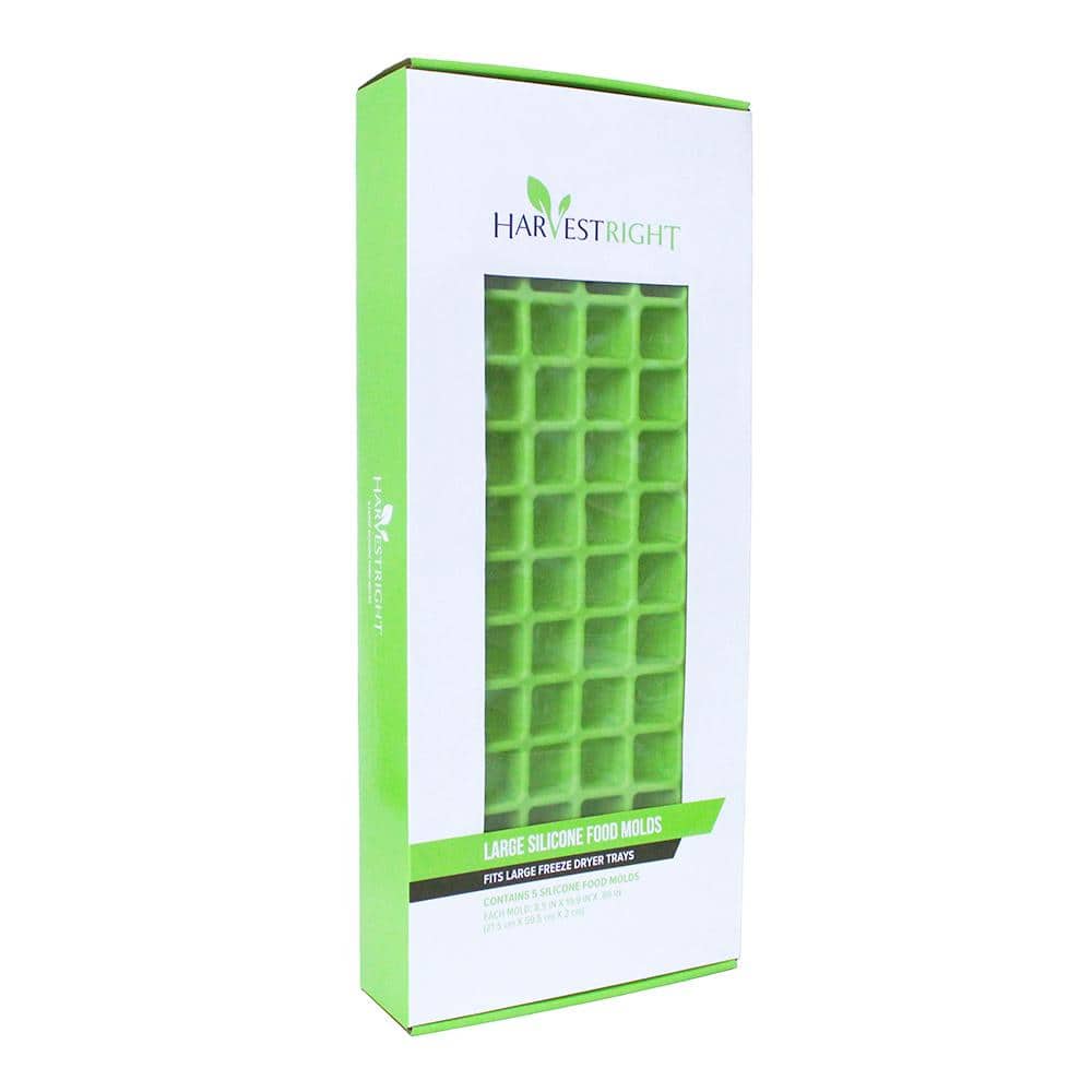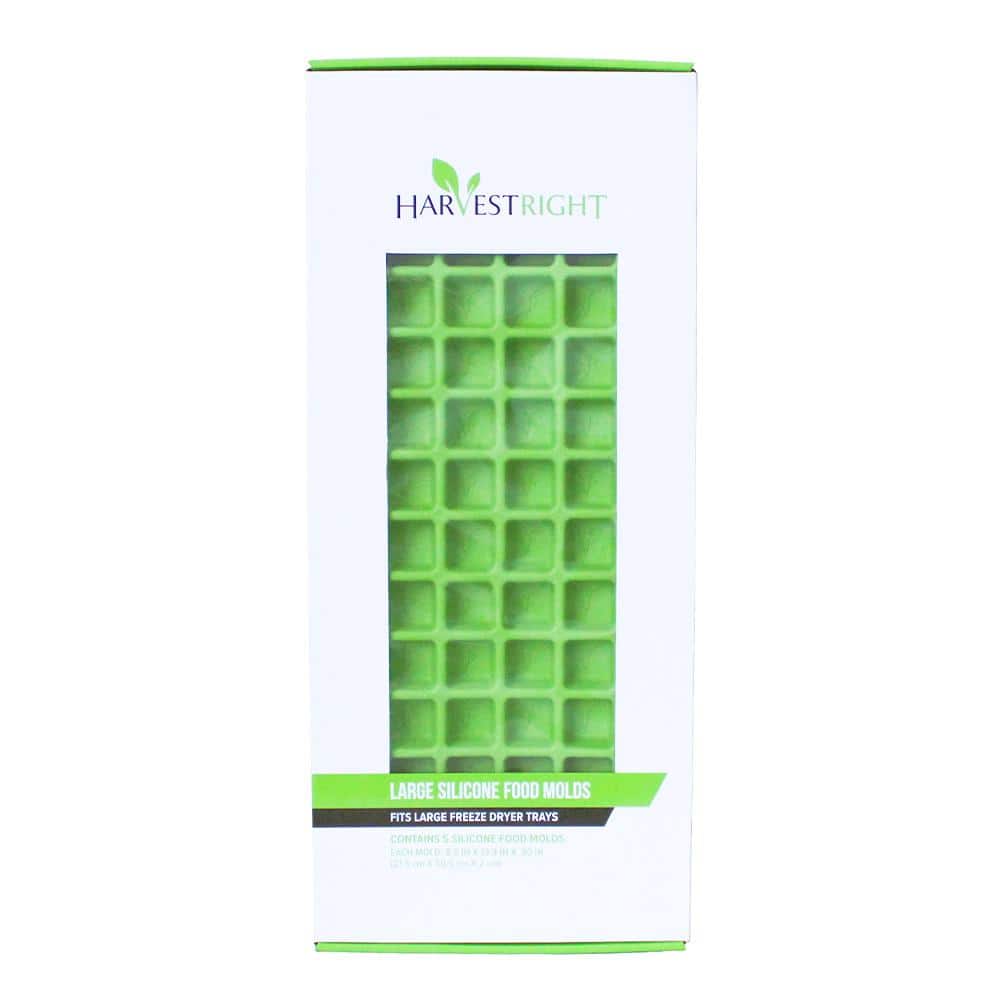 Includes 5 food-grade silicone molds for use in a large freeze dryer. Fit perfectly inside the Harvest Right large trays. Silicone molds are easy to clean and maintain.