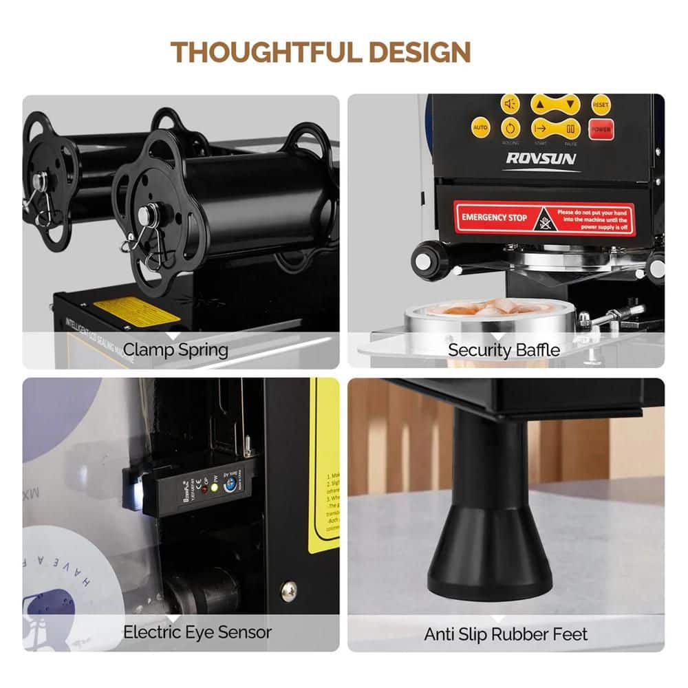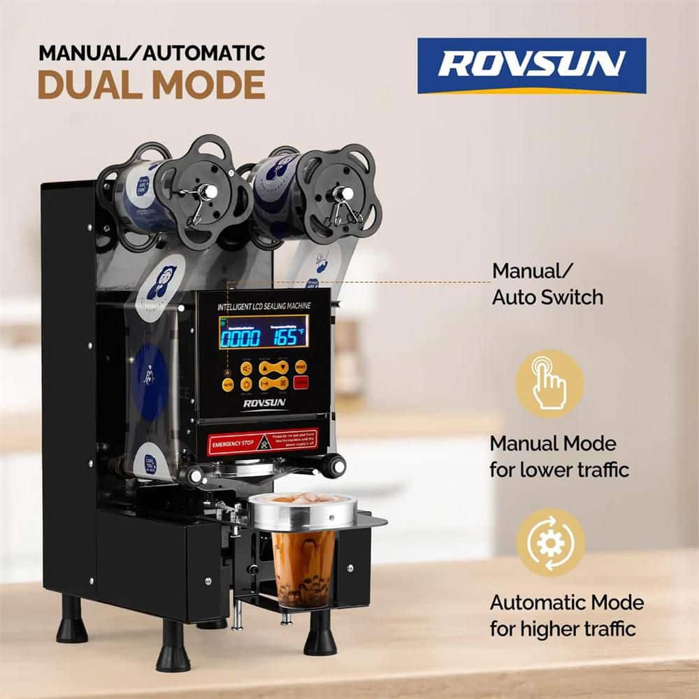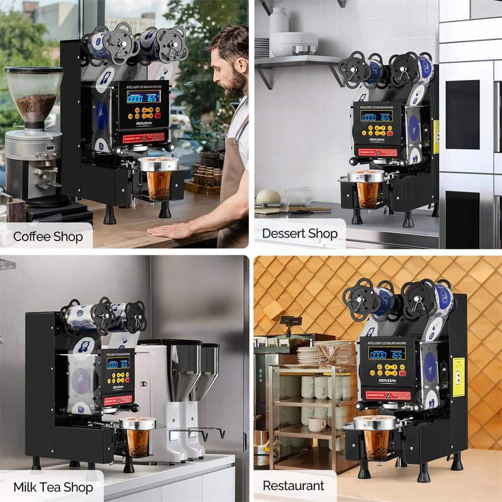 The 350W 110V Automatic Cup Sealing Machine with LCD Intelligent Display is a state-of-the-art solution for fast and precise cup sealing. Equipped with a powerful 350W motor and designed for 110V operation, this machine is perfect for both commercial and home use. The advanced LCD intelligent display allows for easy control and customization of sealing time and temperature, ensuring consistent, airtight seals for beverages, desserts, and snacks. Its sleek black design is both durable and stylish, making it a great addition to any workspace. Compact, user-friendly, and built for efficiency, this cup sealing machine is ideal for bubble tea shops, cafes, or anyone looking to streamline their packaging process with professional-grade results.