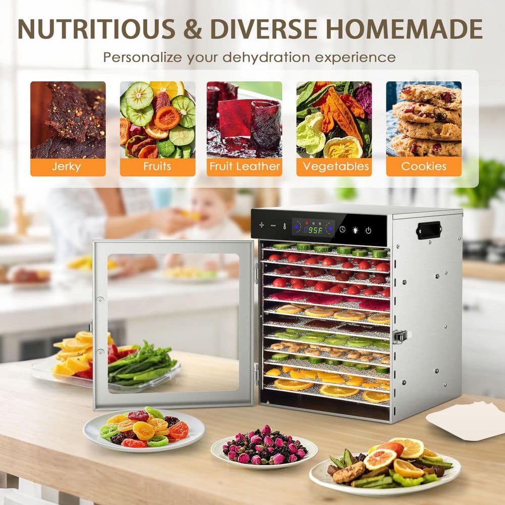 SEEUTEK 12-Tray Food Dehydrator-Digital Timer Adjustable Temp Overheat Protection Recipe Book for Jerky Fruits & Herbs