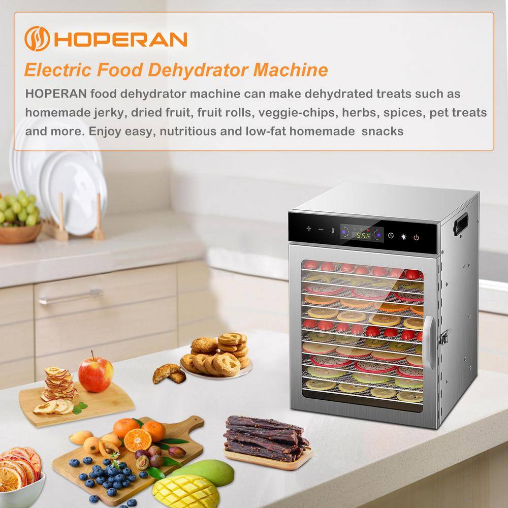 Food dehydrator for home with more function enjoy your DIY beef jerky, dried fruit, dried vegetable. Temperature adjustable. Create your own natural, healthy, and delicious snacks with the temperature adjustable food dehydrator. Fresh and healthy you can make a more flavorful, nutrient dense, preservative/additive free, and much cheaper alternative to commercial products. Transparent trays this food dehydrator is designed with large capacity drying racks, which is enough to hold most food items and create uniform drying. The trays designed with transparent enable you to easily view and control the progress without removing the cover.