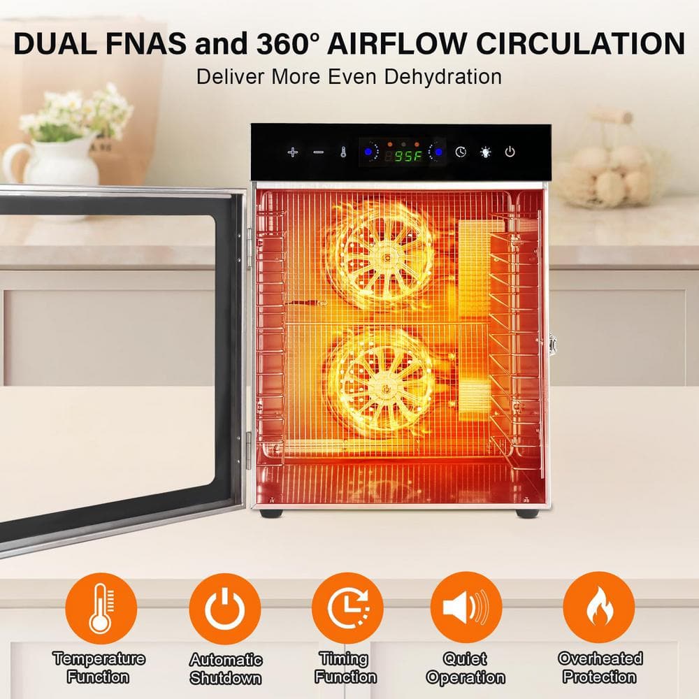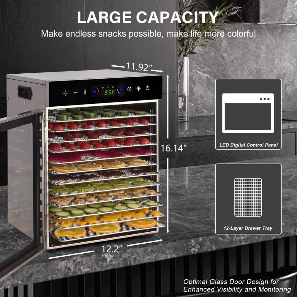 SEEUTEK 12-Tray Stainless Steel Trays Food Dehydrators, Dehydrator Machine Digital Timer Temperature Control