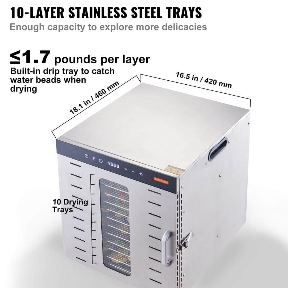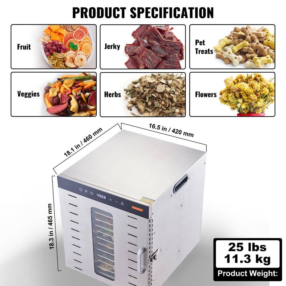 SVOPES Food Dehydrator Machine, 10-Trays, 1000-Watt Electric Food Dryer in Silver with Digital Adjustable Timer and Temperature