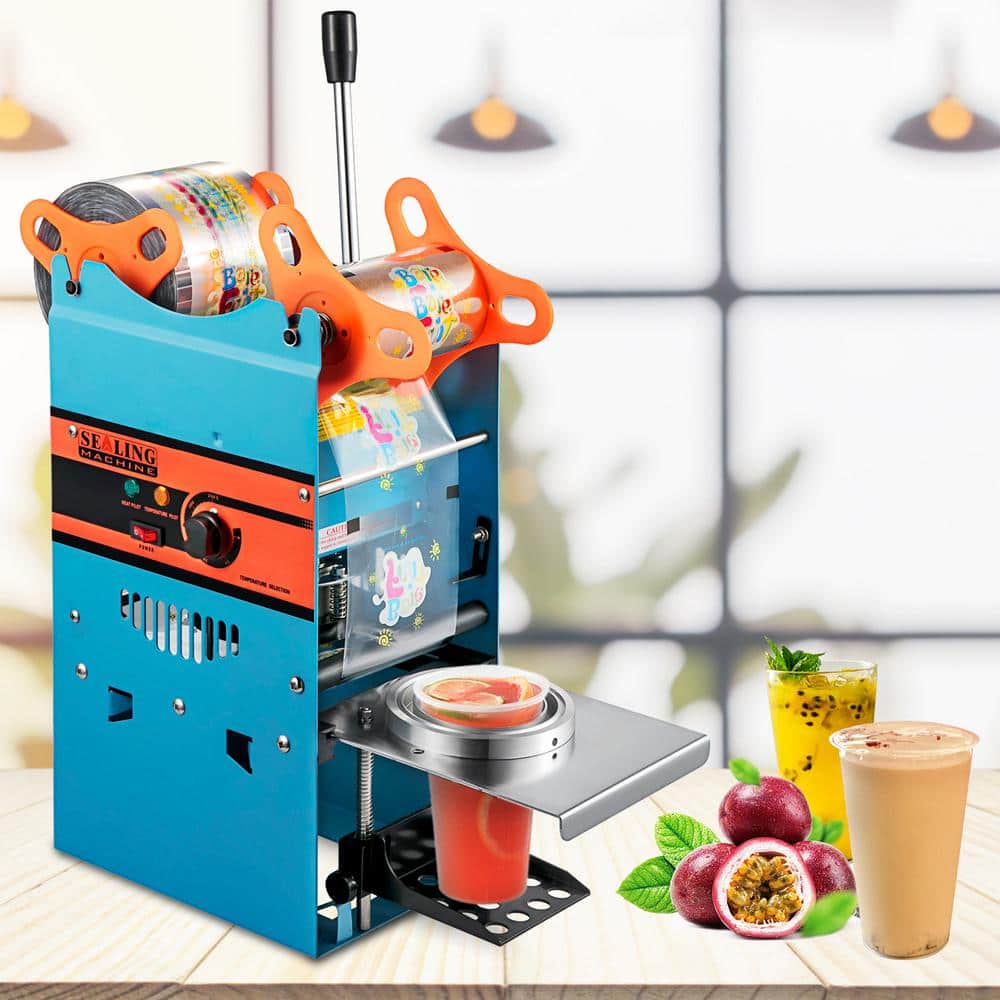 VEVOR Manual Tea Cup Sealer Machine 300-500 Cup per Hour 90/95 mm Cup Diameter Boba Tea Sealing Machine for Restaurants, Blue