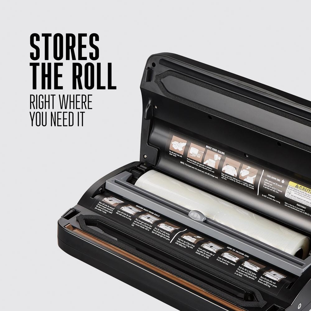 - Powerful vacuum sealer with roll storage for convenience
