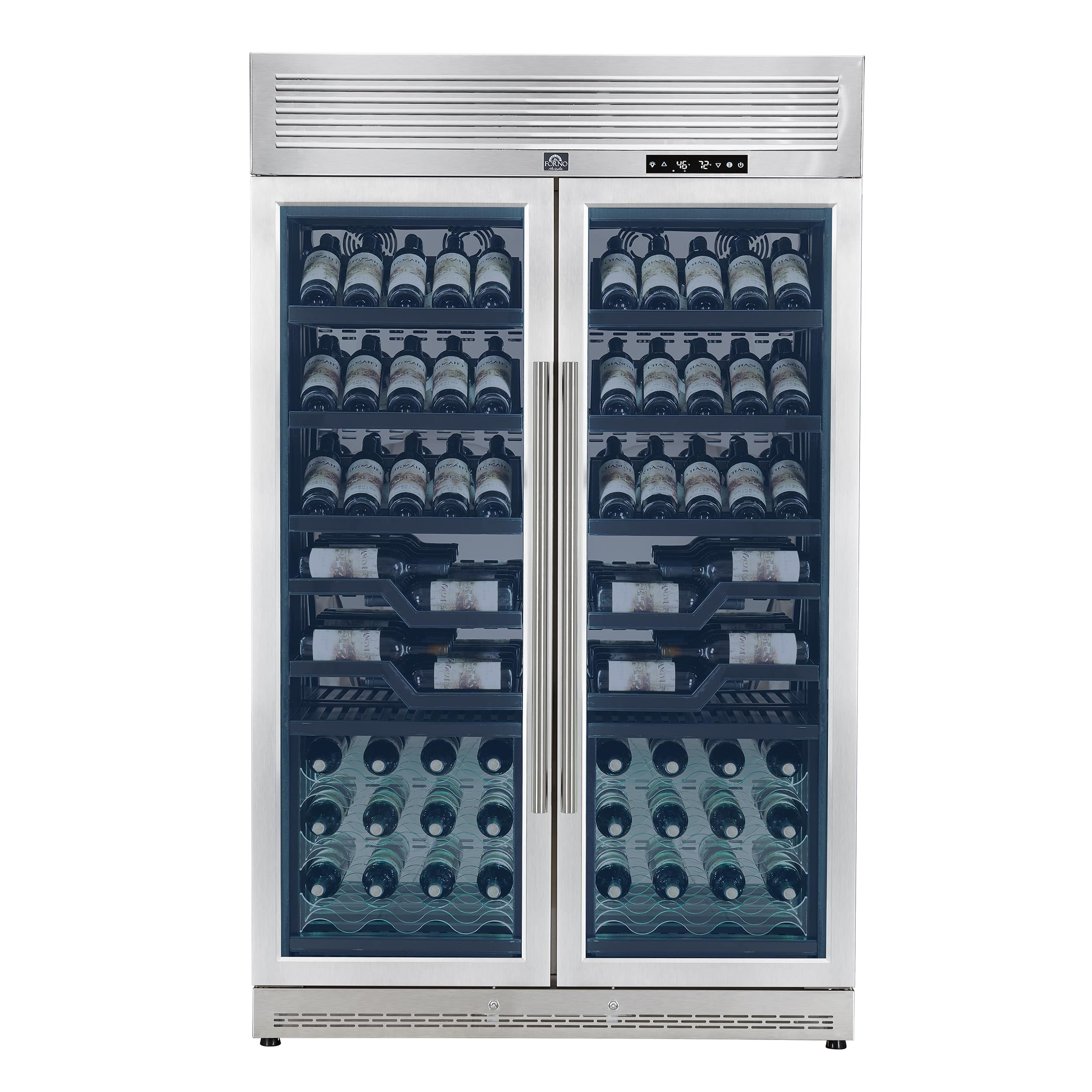 Forno Appliances - Abruzzo 102-Bottle Freestanding Dual Zone Wine Cellar with Green Acrylic Holders & Black Shelves - Stainless Steel