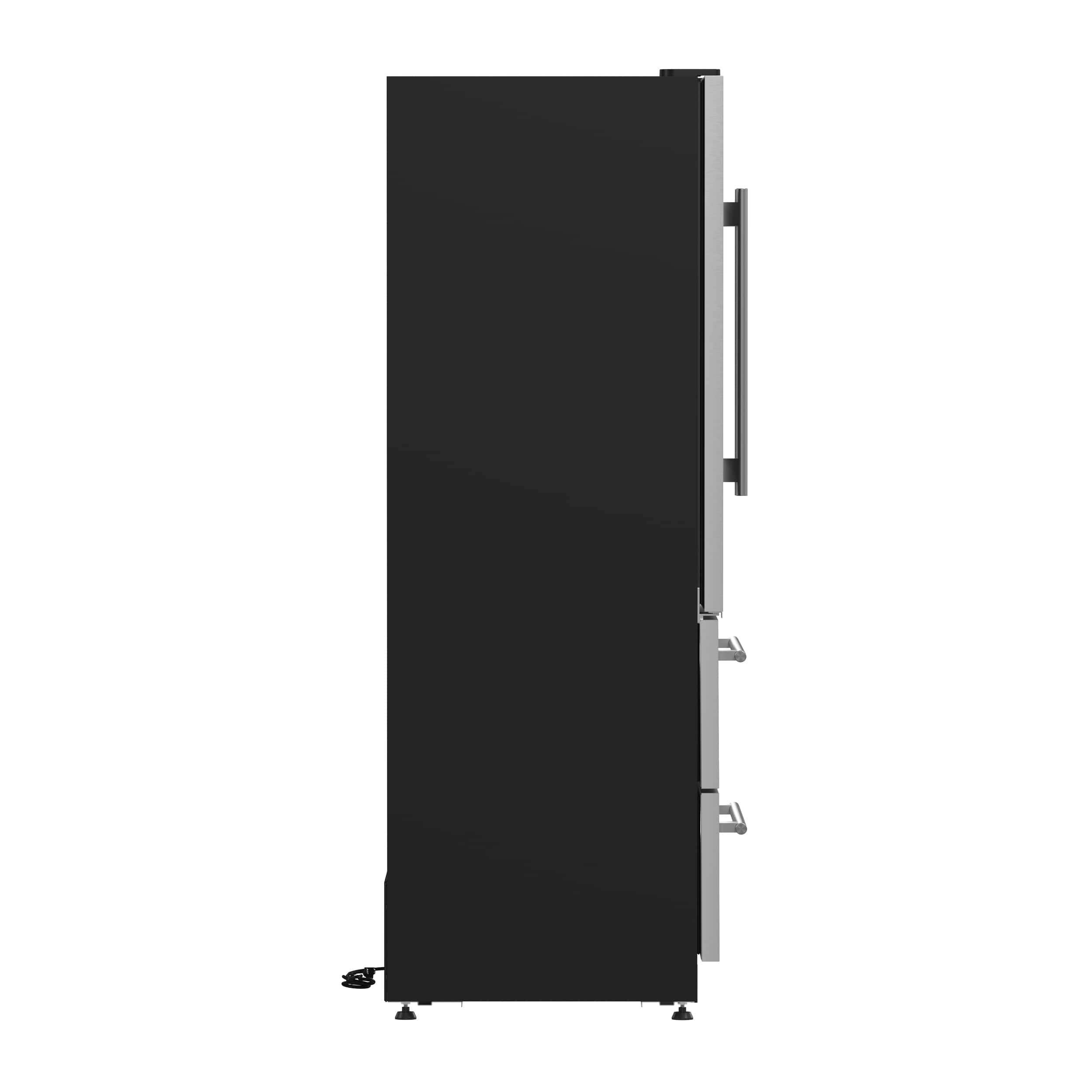 Elevate your wine and beverage storage with the Forno Campania 32" Dual Zone Wine Cellar & Beverage Cooler. Featuring dual zones for optimal red and white wine preservation, this unit includes twenty telescopic shelves that can hold up to 120 bottles, ensuring each vintage is stored at its ideal temperature. Two spacious stainless-steel beverage drawers, equipped with dividers, offer organized storage for up to 228 cans. The elegant stainless-steel finish and triple-layer anti-UV glass doors protect your collection from harmful light, preserving flavor and quality. A sleek touchpad controller with a blue LCD display ensures precise temperature adjustments, while bright LED interior lighting beautifully showcases your collection. The high-efficiency compressor delivers powerful cooling with minimal energy consumption, and the charcoal air filter keeps the interior fresh by neutralizing odors. Designed for a seamless built-in installation, the Campania Wine Cellar offers a quiet operation that blends into any kitchen.