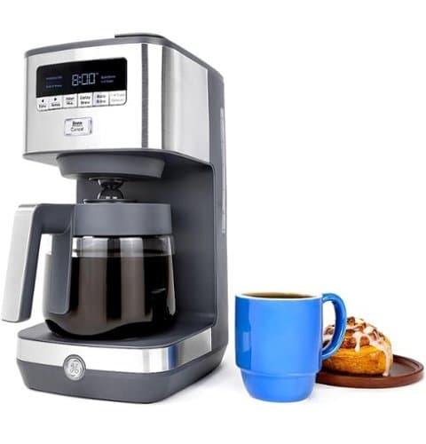 GE - 12 Cup Programmable Coffee Maker with Adjustable Keep Warm Plate and Glass Carafe - Stainless Steel