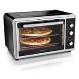 Small enough to fit on your kitchen counter, but large enough to help you prepare for any snack, meal or party, the Hamilton Beach Countertop Oven with Convection & Rotisserie boasts full-size oven performance in a compact, energy-efficient form. Designed with both kitchen style and practicality in mind, this oven is packed with versatile cooking options that range from baking cakes to broiling salmon to roasting an entire 5 lb. chicken. The wide interior and two adjustable cooking racks provide double the space for cooking multiple foods at once.