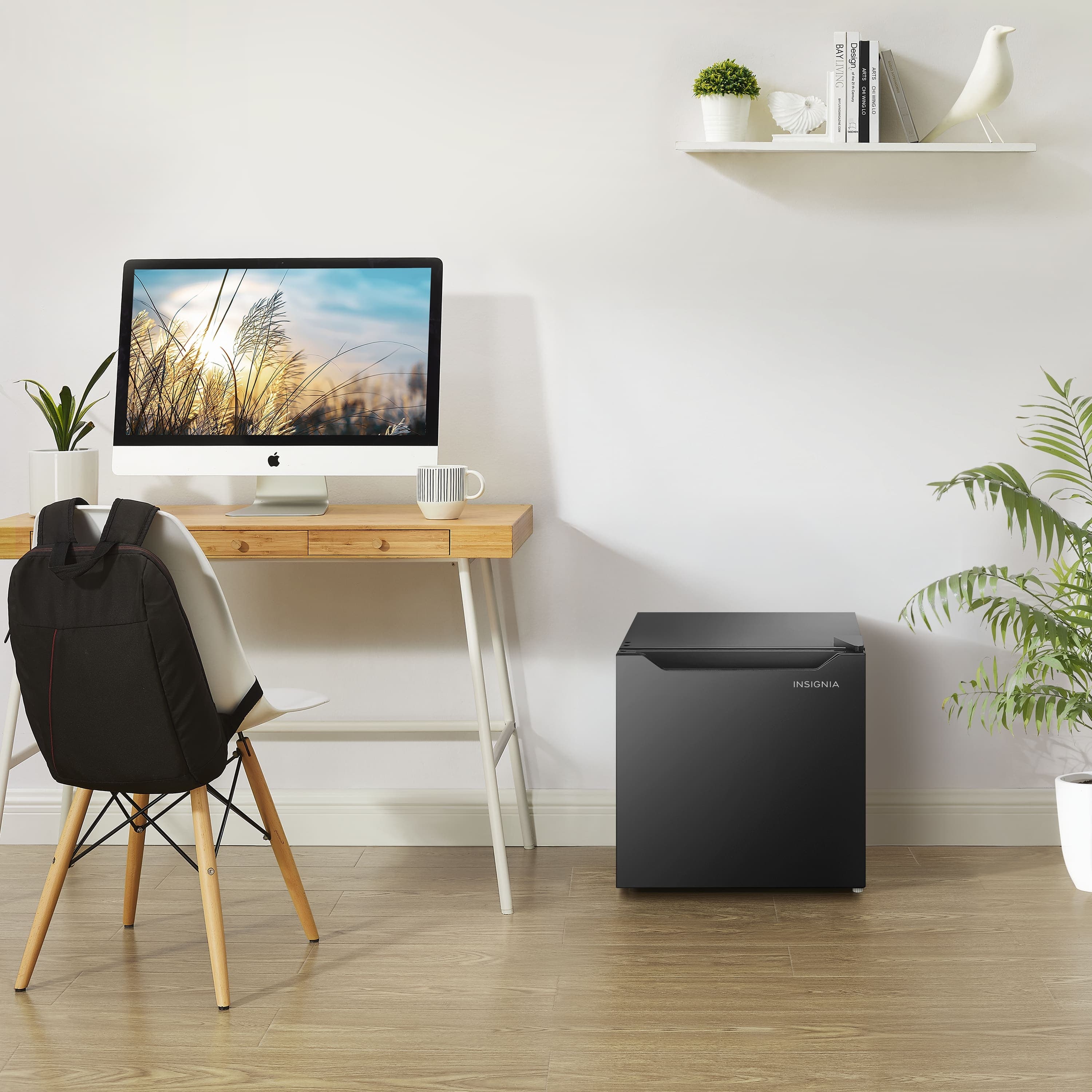 Find a home for this Insignia 1.7 Cu. Ft. Mini Fridge with Door Storage and ENERGY STAR Certification in your office, mini bar, dormitory, or other small area. Its compact design is ideal for limited square footage. A glass shelf and two door racks keep your refrigerator organized and ready to store your foods. And it’s Energy Star certified to save costs on your electric bill.