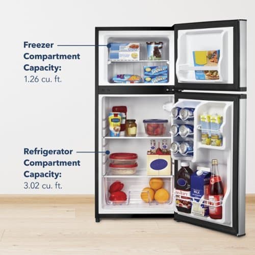 Insignia™ - 4.3 Cu. Ft. Mini Fridge with Top Freezer and ENERGY STAR Certification - Stainless Steel