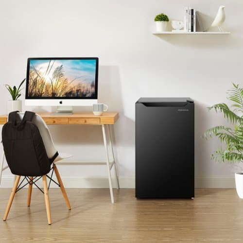 Find a home for this Insignia 4.4 Cu. Ft. Mini Fridge with Door Storage and ENERGY STAR Certification in your office, mini bar, dorm, or other small spaces. Its compact design is ideal for limited square footage. Three glass shelves, a crisper drawer, and seven door racks keep your refrigerator organized and ready to store your food. It’s also Energy Star certified to save costs on your electric bill.