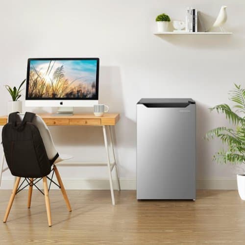 Find a home for this Insignia 4.4 Cu. Ft. Mini Fridge with Door Storage and ENERGY STAR Certification in your office, mini bar, dorm, or other small spaces. Its compact design is ideal for limited square footage. Three glass shelves, a crisper drawer, and seven door racks keep your refrigerator organized and ready to store your food. It’s also Energy Star certified to save costs on your electric bill.