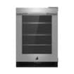 Chill beverage collections and food with this JennAir RISE 24-inch under-counter refrigerator. The double-paned thermal glass filters UV light, helping maintain internal temperatures, and the smooth-close door offers quiet secure closure. This JennAir RISE 24-inch under-counter refrigerator has energy-efficient LEDs, illuminating contents without creating temperature fluctuations, while the glass shelves provide enhanced visibility.