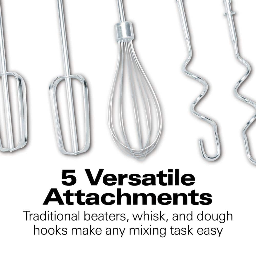 The Hamilton Beach Classic Chrome Hand/Stand Mixer lets you determine the best tool for the job. Kneading a batch of sticky dough? Let the stand mixer do the work. Blending a quick dressing? Remove the hand mixer from the base to achieve the fast results you want. That sort of versatility is what an interchangeable hand/stand mixer can offer your kitchen. The Hamilton Beach Classic Chrome Hand/Stand Mixer includes a variety of attachments, including traditional beaters, a whisk, and dough hooks. Its 6 speeds and Quick Burst button allow you to tailor mixing and beating to achieve your desired result. This versatile kitchen countertop appliance features a 4-quart stainless-steel bowl, a Bowl Rest mixer stabilizer, and 290-Watt at peak power. With the traditional beaters, whisk and dough hooks that come with your Hamilton Beach 6-Speed Classic Stand Mixer, you'll be pushing culinary boundaries with ease.