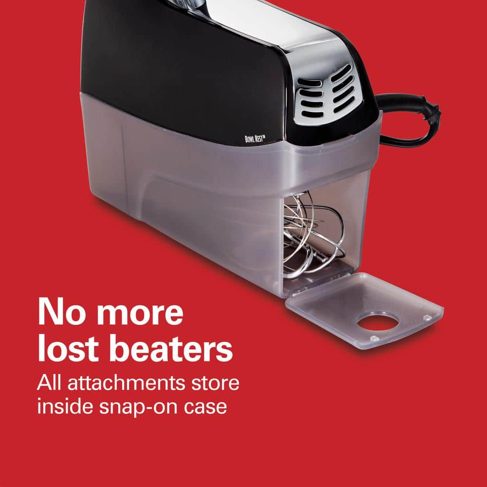 Hamilton Beach 6-Speed Black Hand Mixer with Snap-On Case