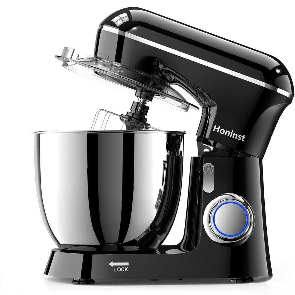 Inspire your culinary creativity with this JEREMY CASS Honinst BigChef Stand Mixer, it is powerful enough for making quick work of your favorite ingredients. Equipped with 3 accessories including a dough hook, whisk and beater, it allows you to blend, beat, whip, knead and mix easily. The mixer alone weighs only 8.37 lbs. with accessories added (bowl, beaters). The light ABS body makes it easy to move around when not firmly attached to a surface with the 4 strong suction cups on the bottom of the machine. This Mixer is easy to operate and easy to clean, perfect for 4-8 people for family meals and party needs.
