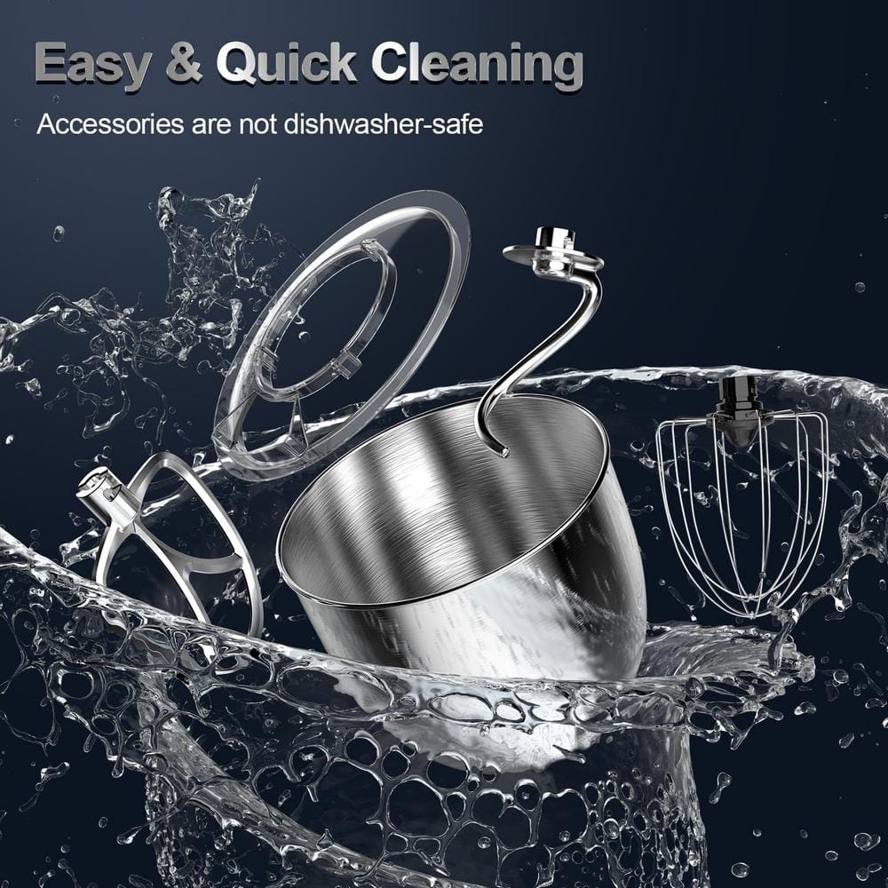 Inspire your culinary creativity with this JEREMY CASS Honinst BigChef Stand Mixer, it is powerful enough for making quick work of your favorite ingredients. Equipped with 3 accessories including a dough hook, whisk and beater, it allows you to blend, beat, whip, knead and mix easily. The mixer alone weighs only 8.37 lbs. with accessories added (bowl, beaters). The light ABS body makes it easy to move around when not firmly attached to a surface with the 4 strong suction cups on the bottom of the machine. This Mixer is easy to operate and easy to clean, perfect for 4-8 people for family meals and party needs.
