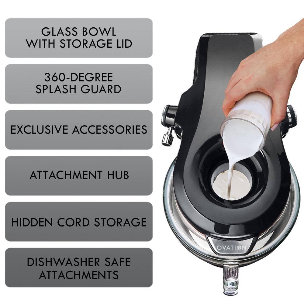 Experience all the power and versatility you expect in a premium stand mixer, and more! This 500W stand mixer features an innovative pour-in top, exclusive accessories, and universal attachment hub. Huge 5 qt capacity can mix 9 dozen cookies at once.
