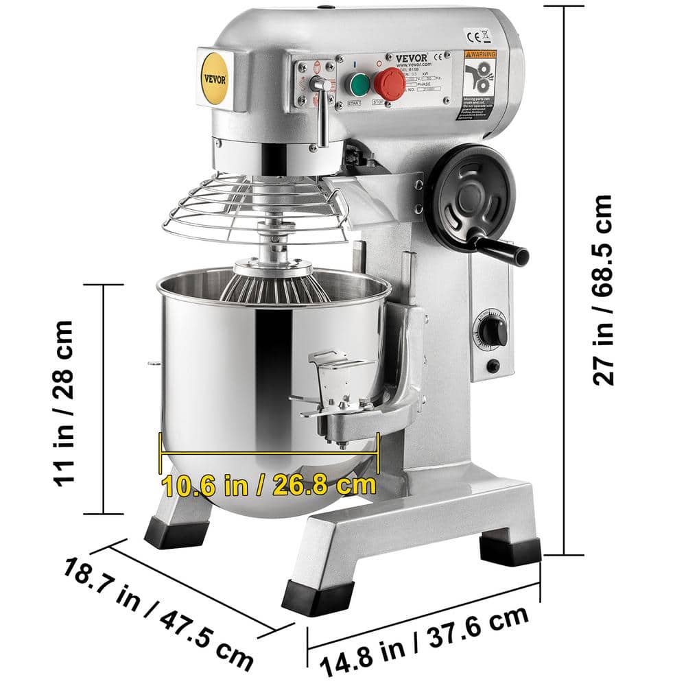 VEVOR Commercial Stand Mixer 15 qt. Dough Mixer Heavy Duty Silver Electric Food Mixer with 3-Speeds Adjustable 500 W