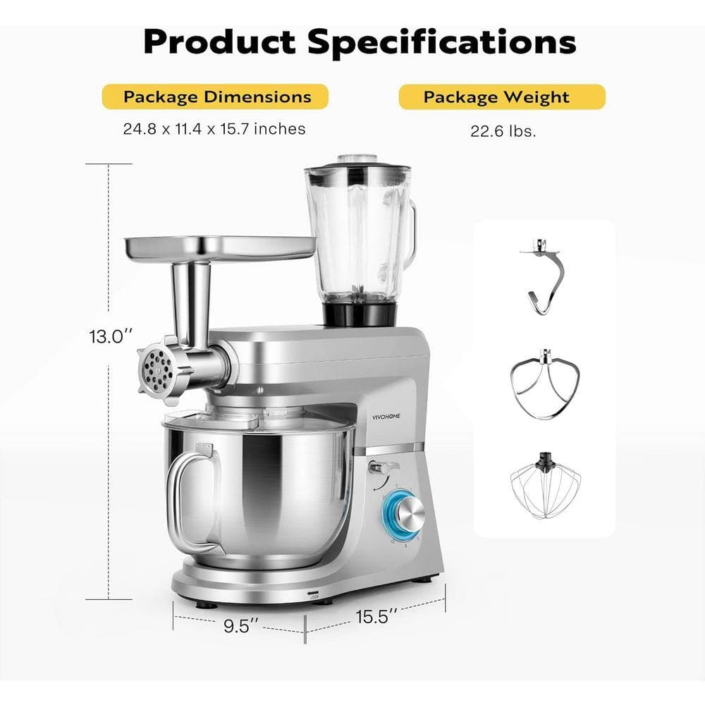 VIVOHOME multi-functional stand mixer, with a high-performance 660-Watt motor and 10-speed control, will meet your culinary needs. Easily set up and dismantled, it will make fulfilling dozens of tasks in your kitchen quick and convenient. Let's bring the multi-purpose stand mixer home.